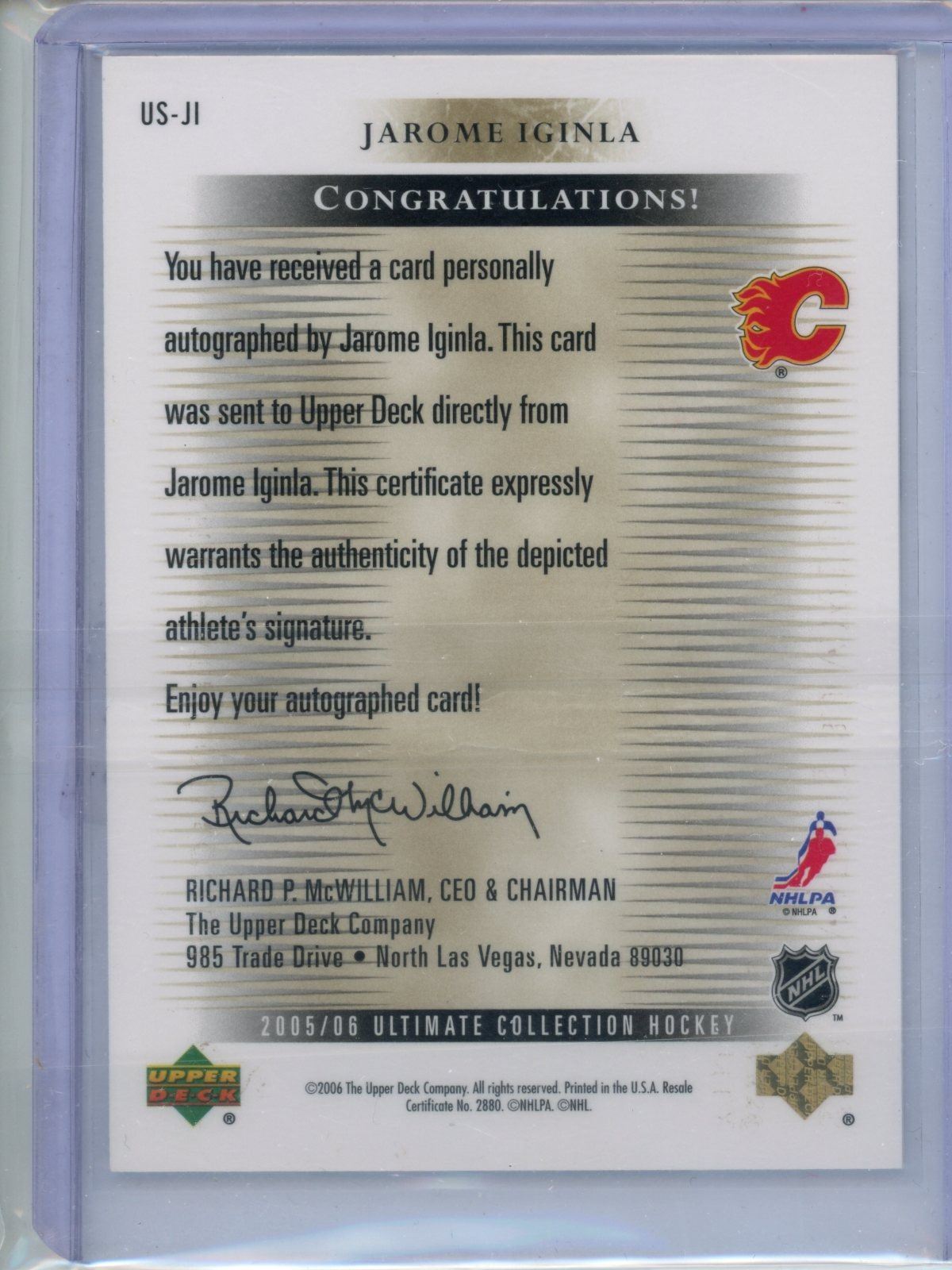2005-06 Upper Deck Ultimate Signature Jerome Iginla Autographed Card MINT