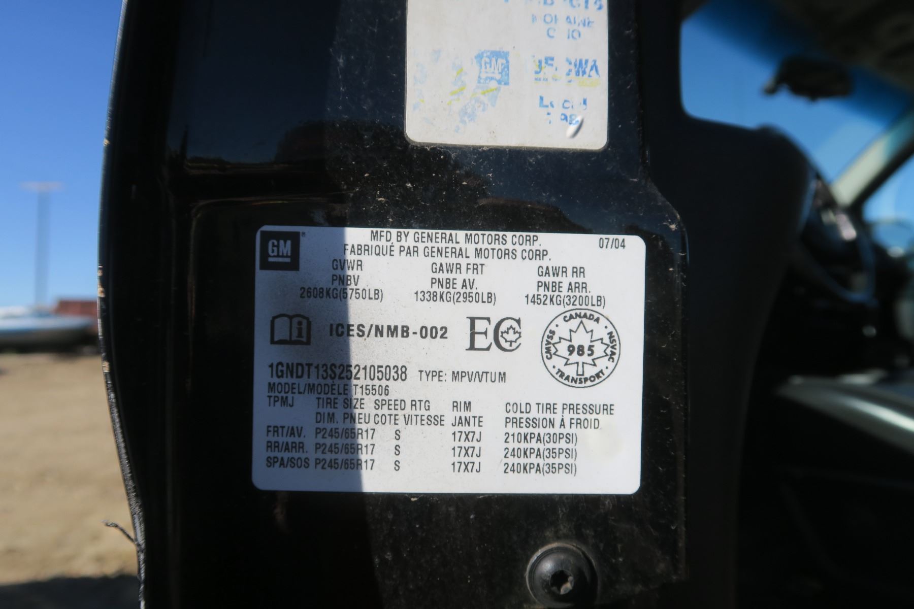 2005, CHEV TRAILBLAZER LT 4WD - 1GNDT13S252105038 - (Has Keys) Needs Both Inspections, Sold As Is - SGI Online VIN Lookup: https://www.sgi.sk.ca/vin