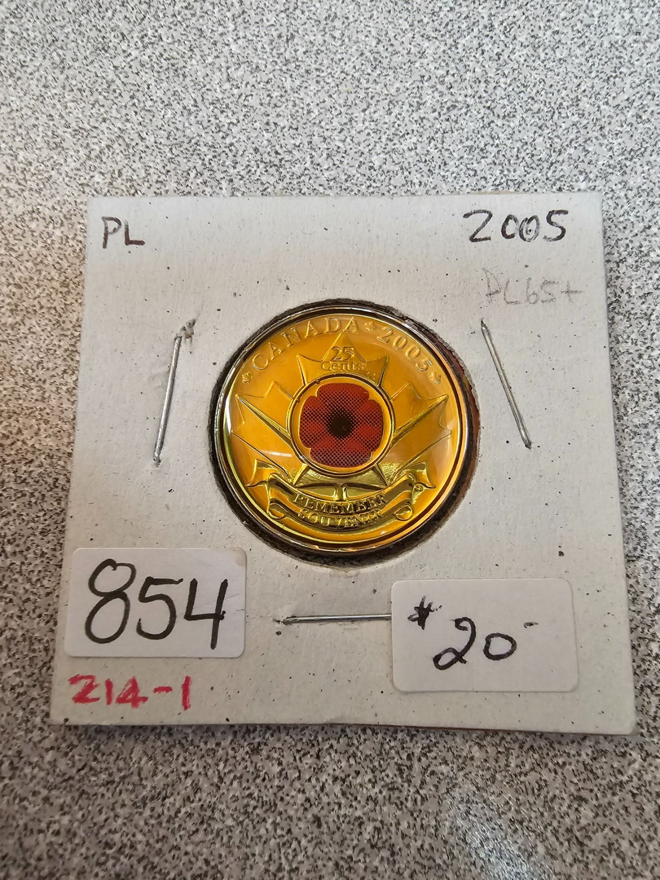 2005 Canada 25¢ quarter Remember Souvenir colorized poppy