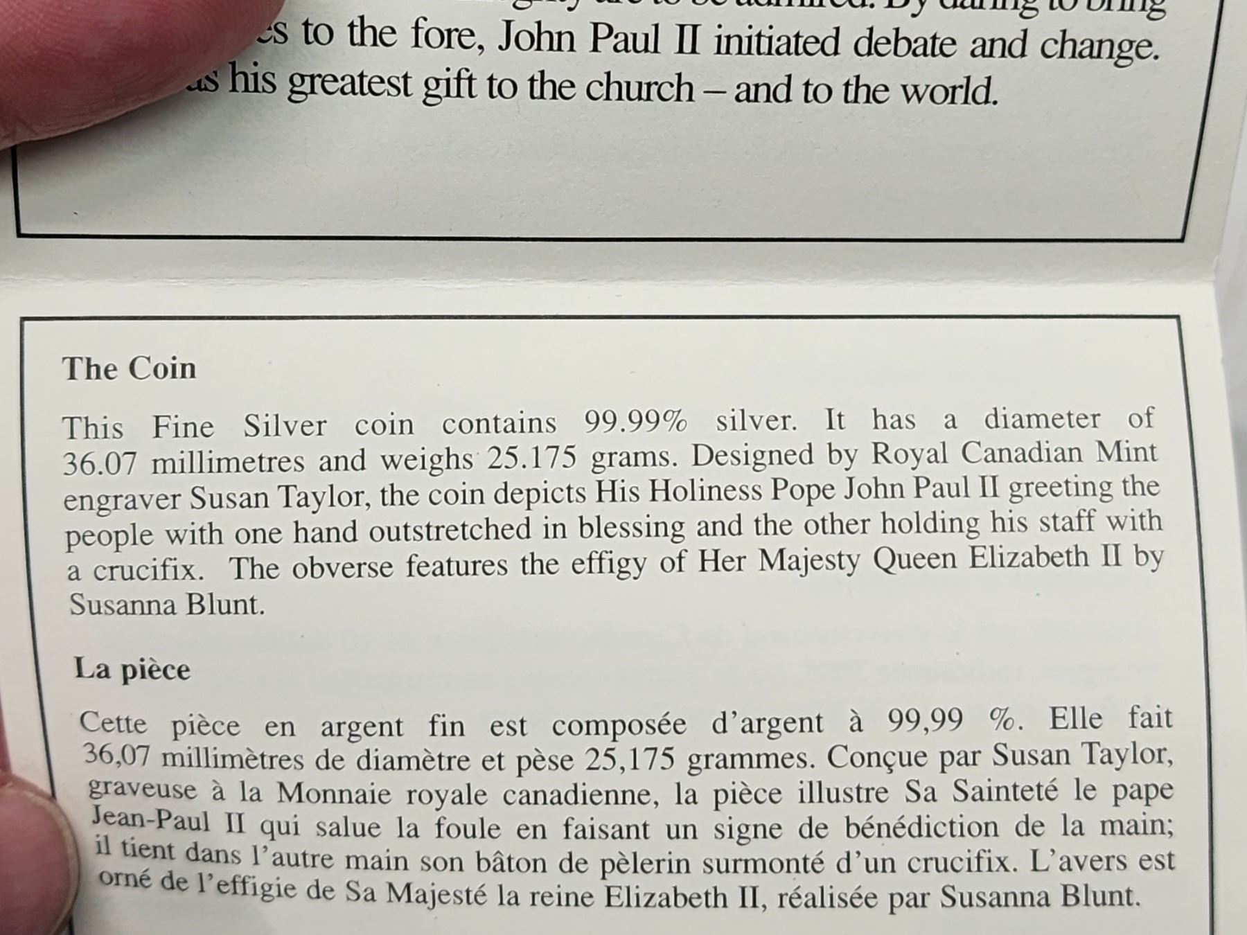 2005 Canadian 1o dollar. .999 silver coin - 25.175grams, Depicts his holiness Pope John II