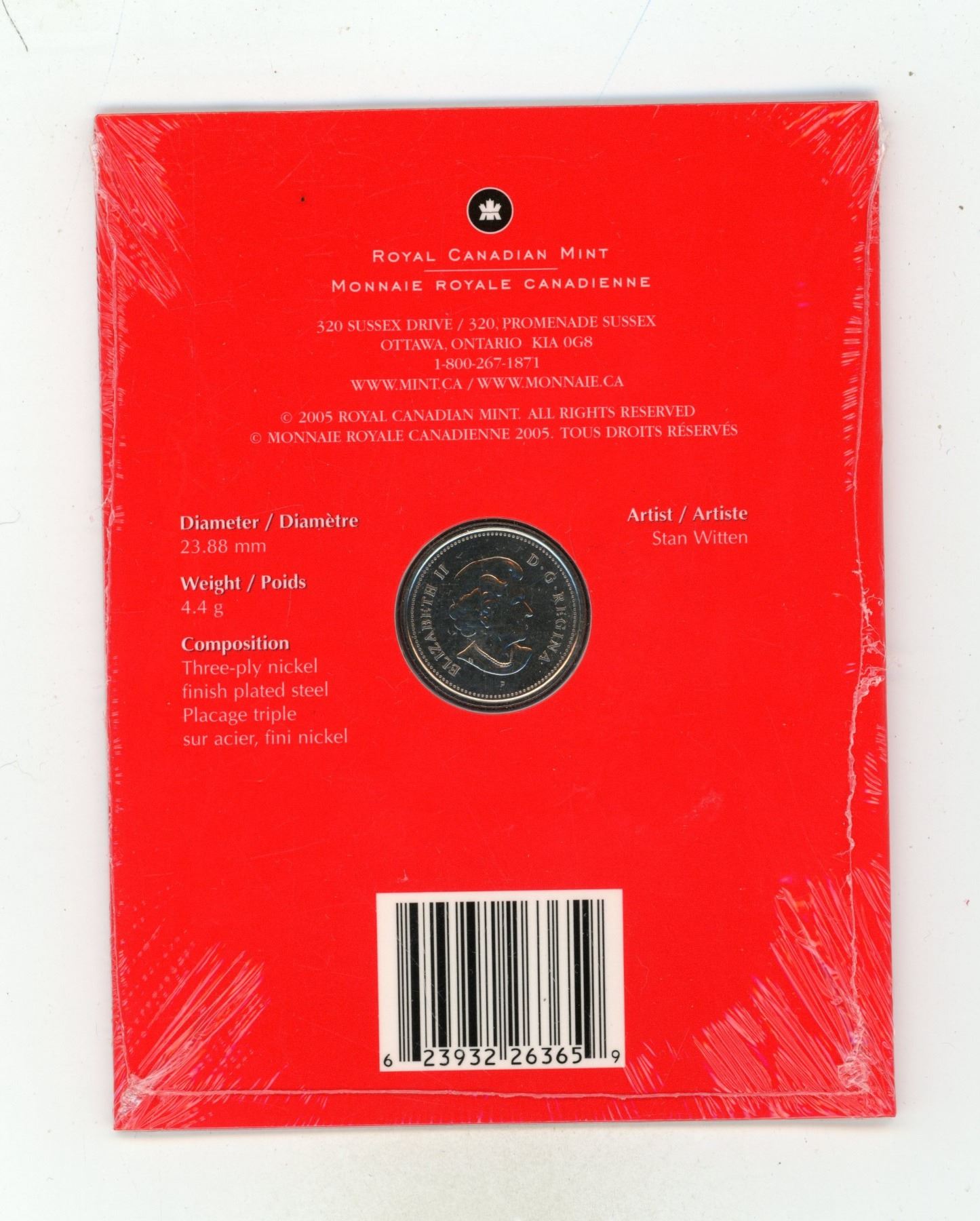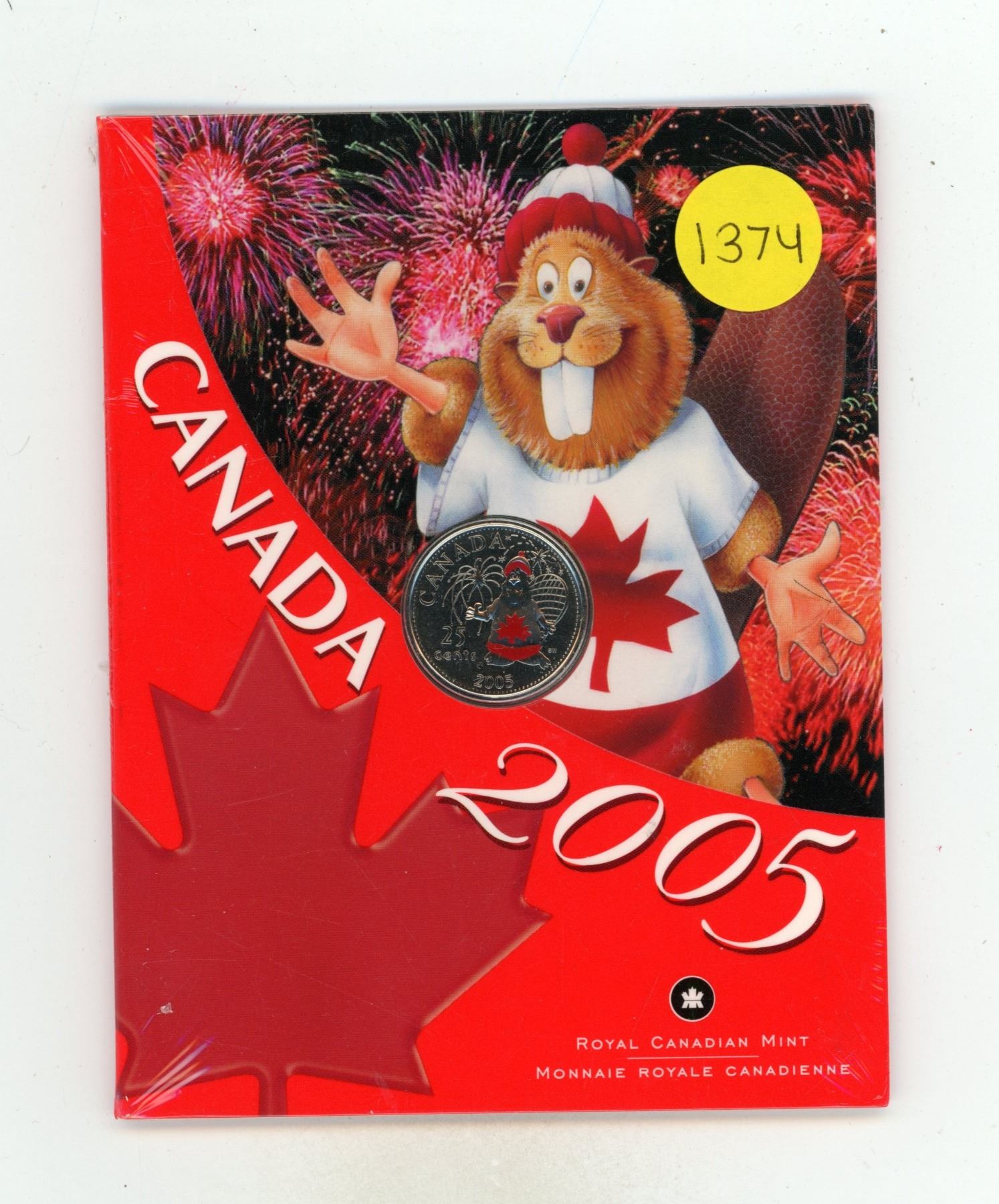 2005 Colourized Canada Day 25 Cents with Beaver wearing a red shirt and toque. Housed in its original and unopened RCM folder.