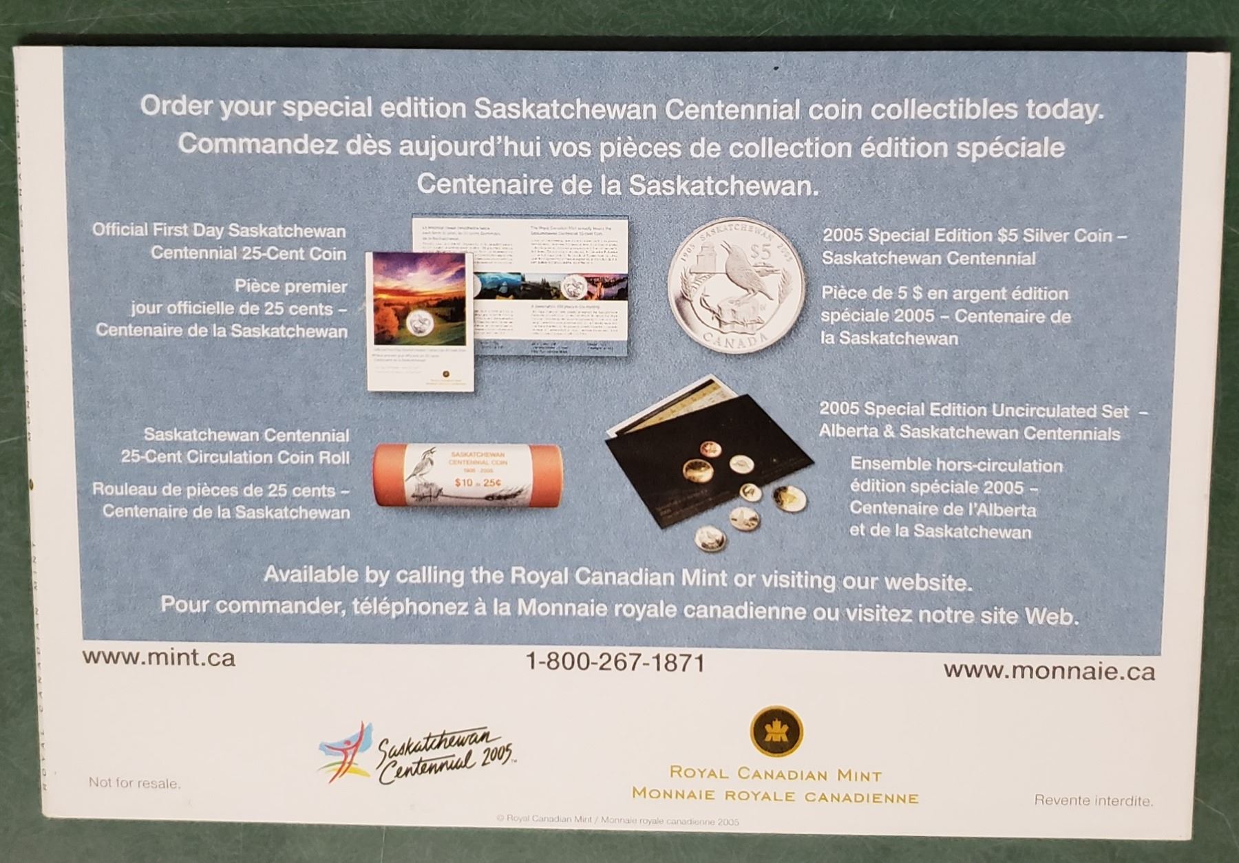 2005 Sask Centennial Collector Card + Coin
