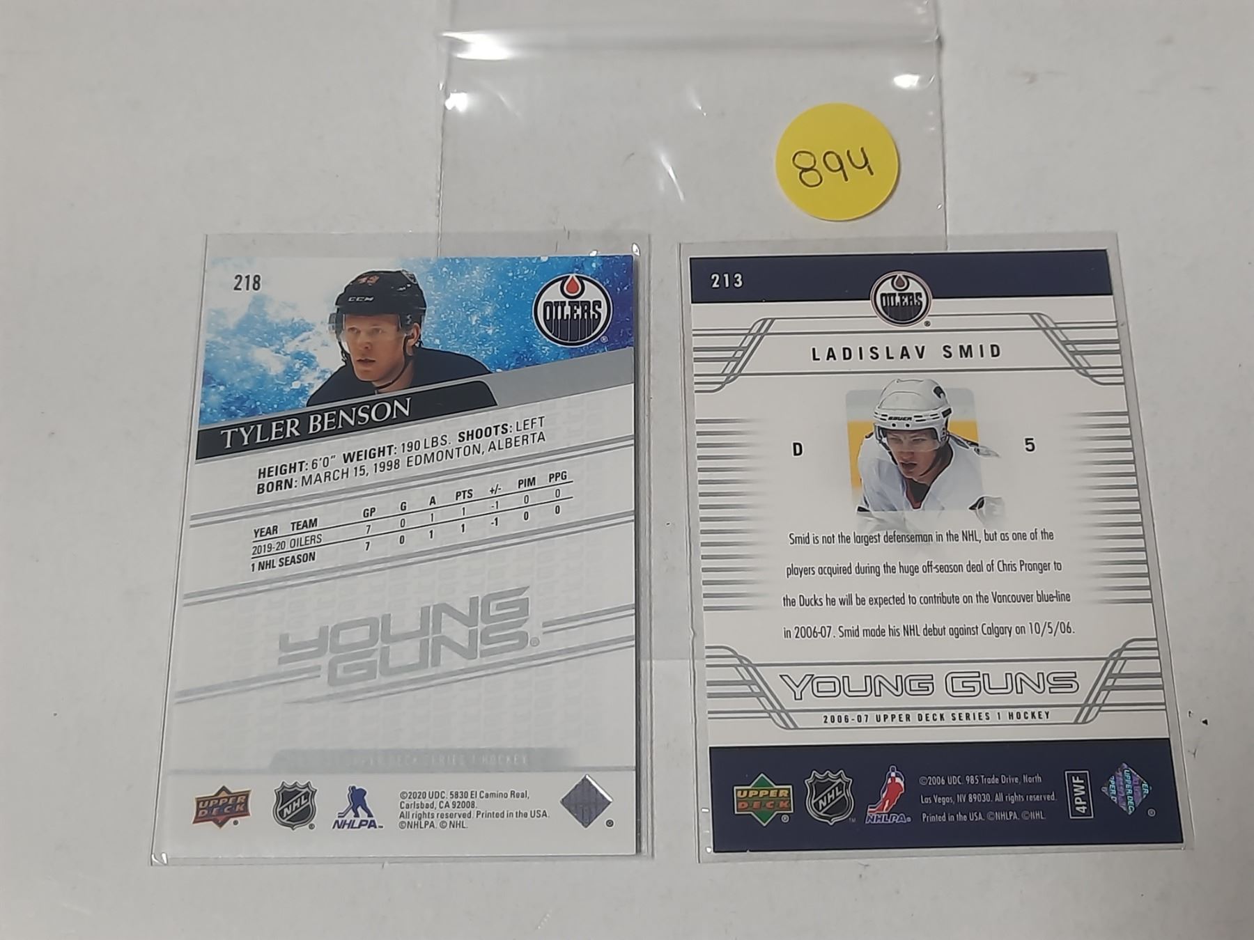 2006-07 Upper Deck Series 1 Hockey - Young Guns - Ladislav Smid and 2020-21 Upper Deck Series 1 Hockey - Young Guns - Tyler Benson.