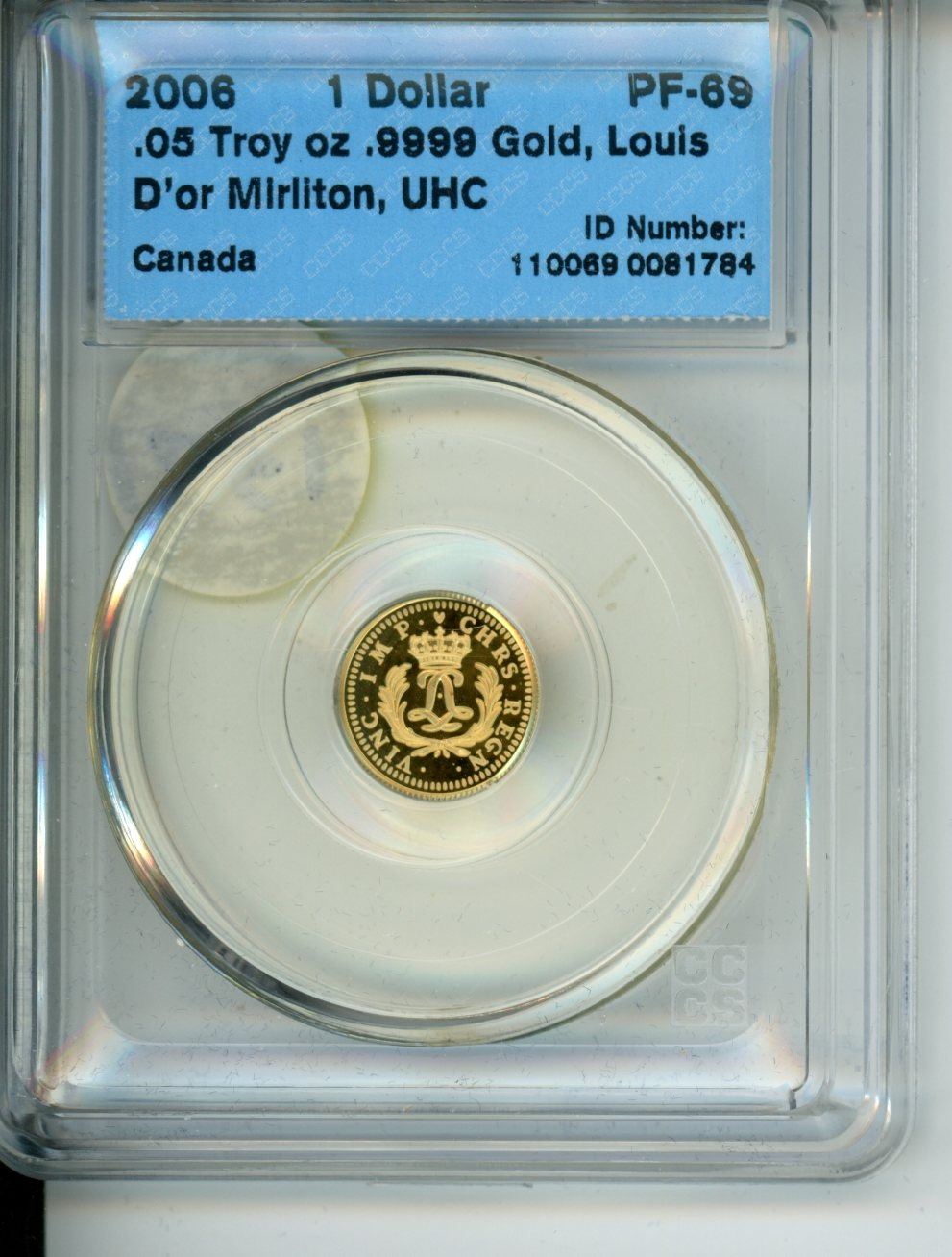 2006 1 dollar .05 troy oz .9999 gold "Louis D'or Mirliton CCCS PF-69