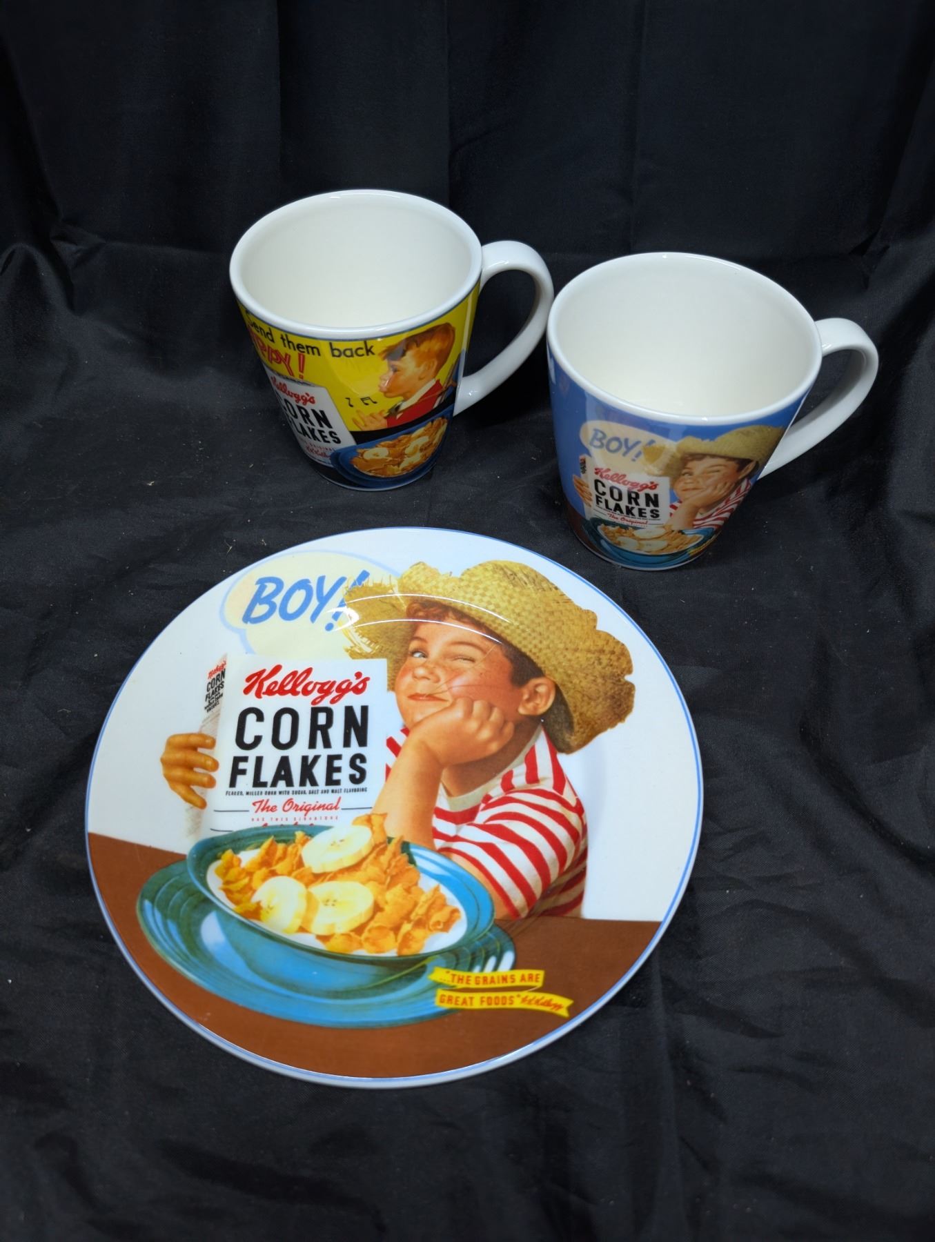 2006 Kellogg's 100 Anniversary Dish Set (2) Mugs (1) Plate (Corn Flakes)
