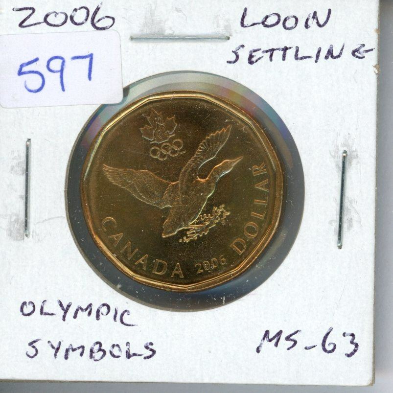 2006 Loon Settling Loonie. Olympic symbols. MS-63.