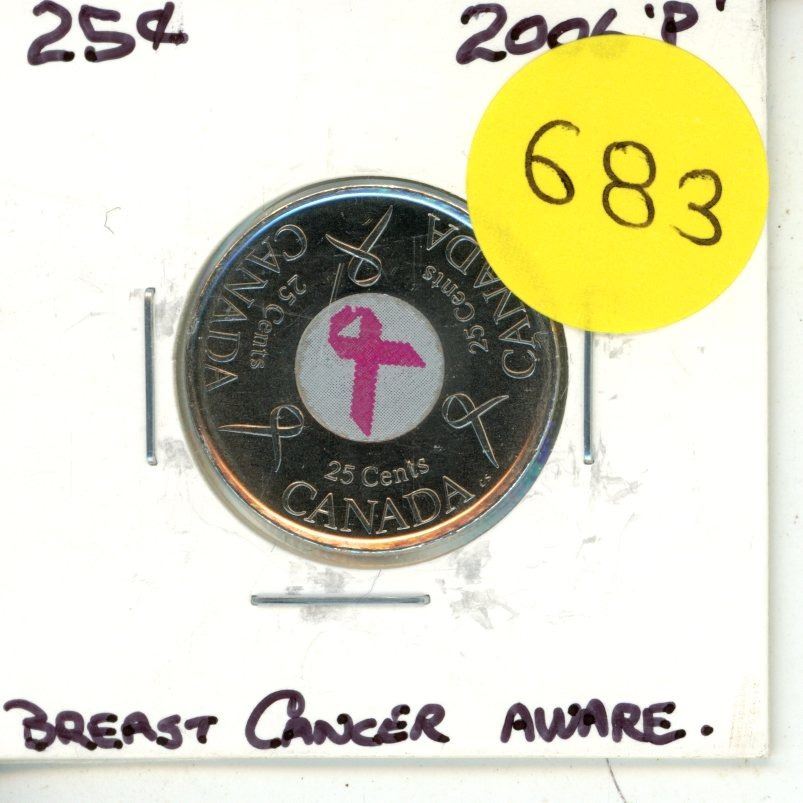 2006 P Canada Breast Cancer Aware 25 Cents Coin.