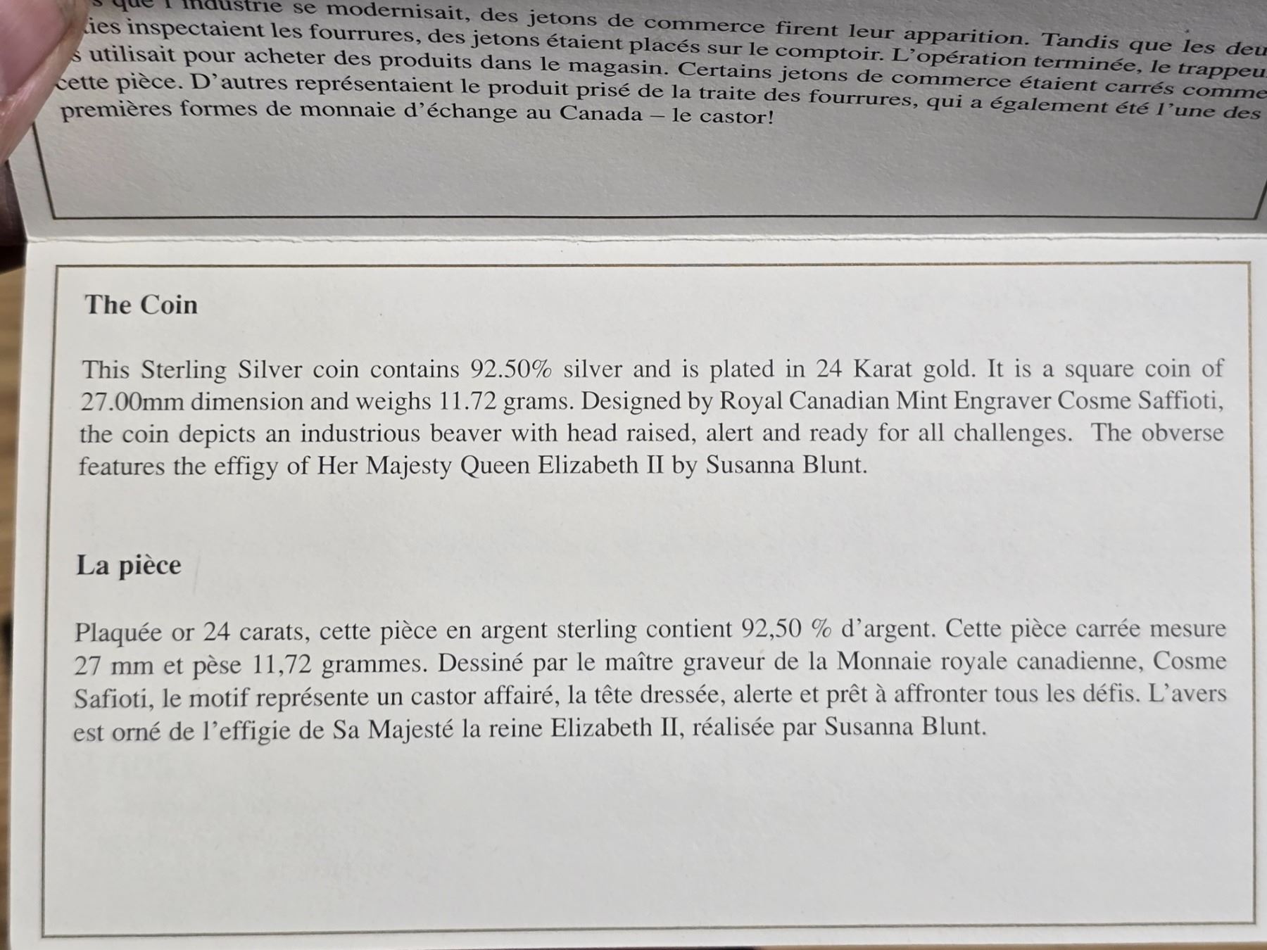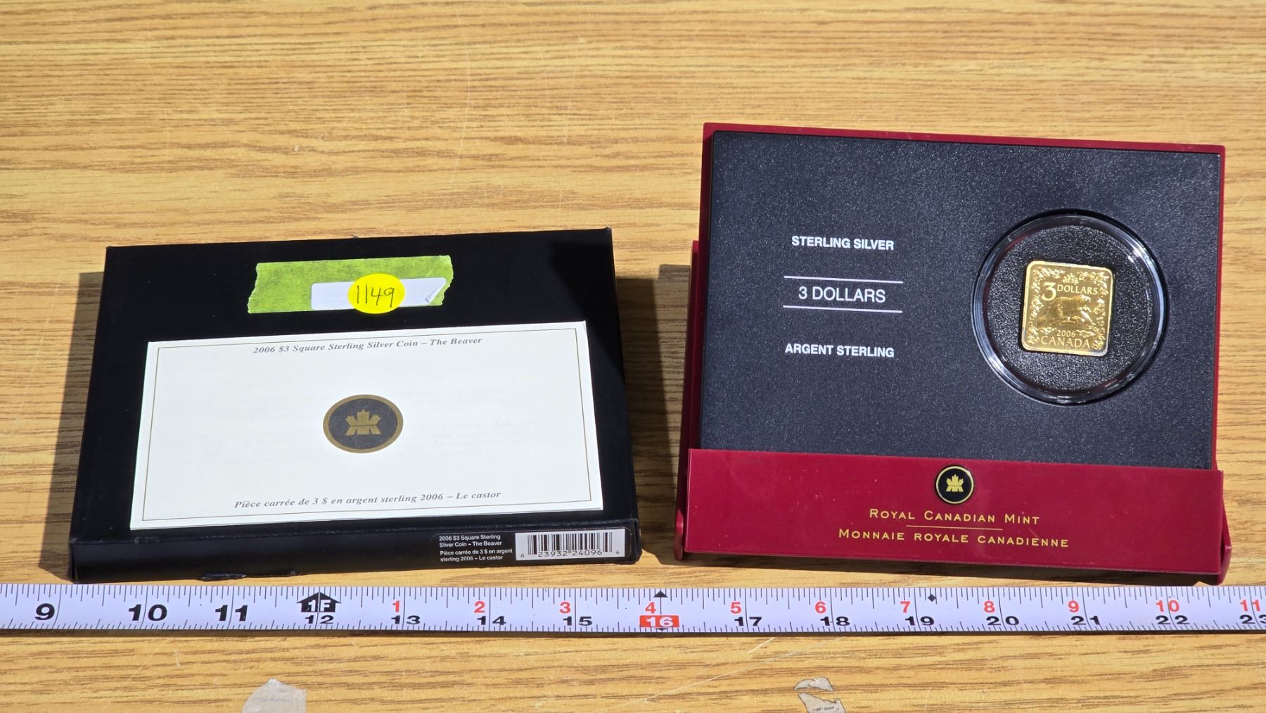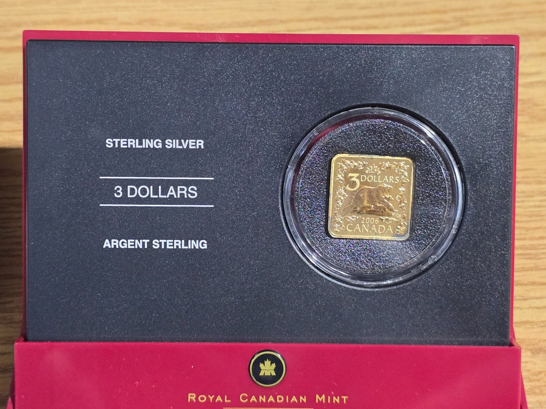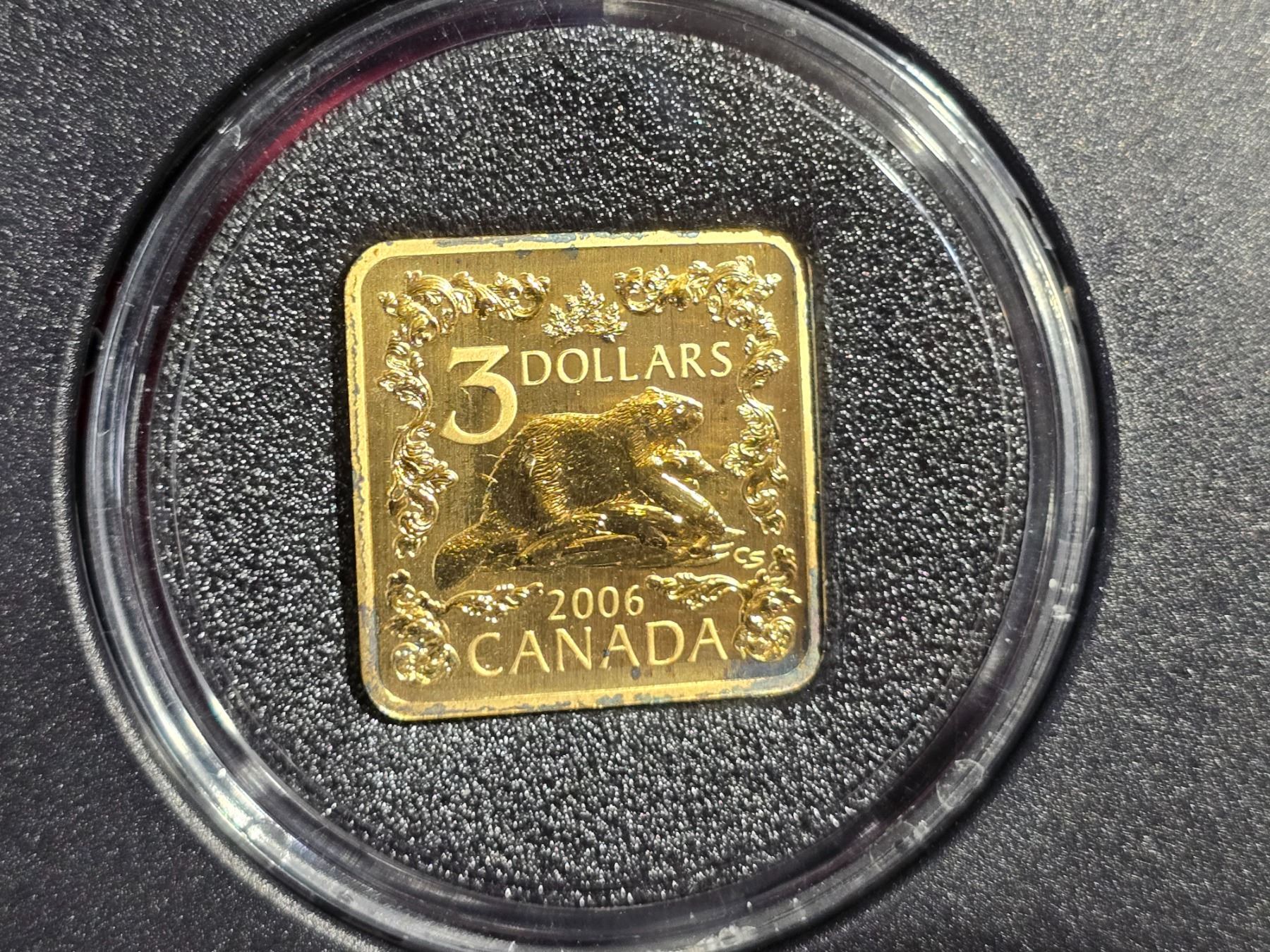 2006 RCM Canadian 24k gold plated on .925 sterling silver, 3 dollar square beaver coin, in case