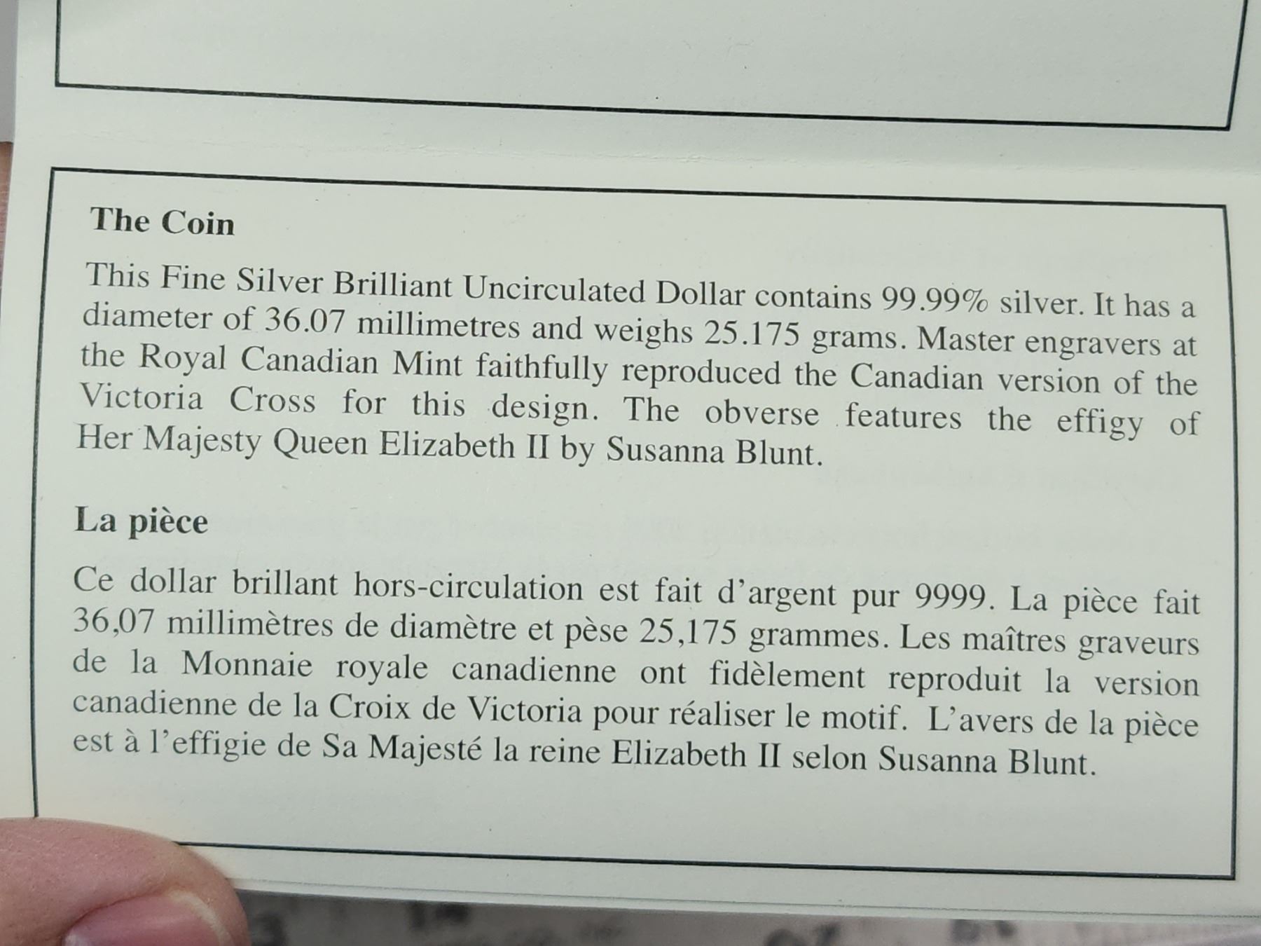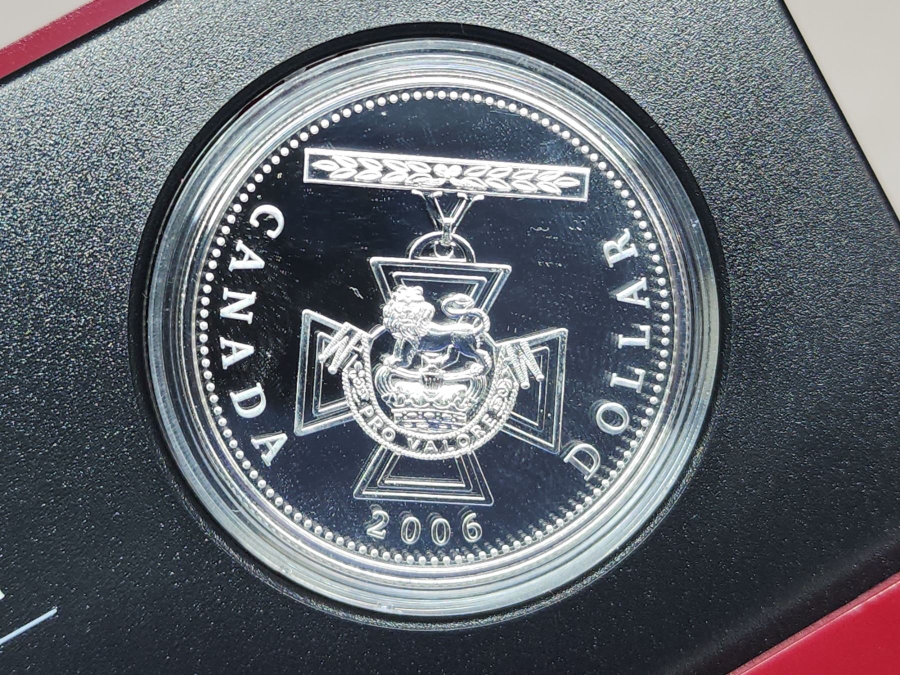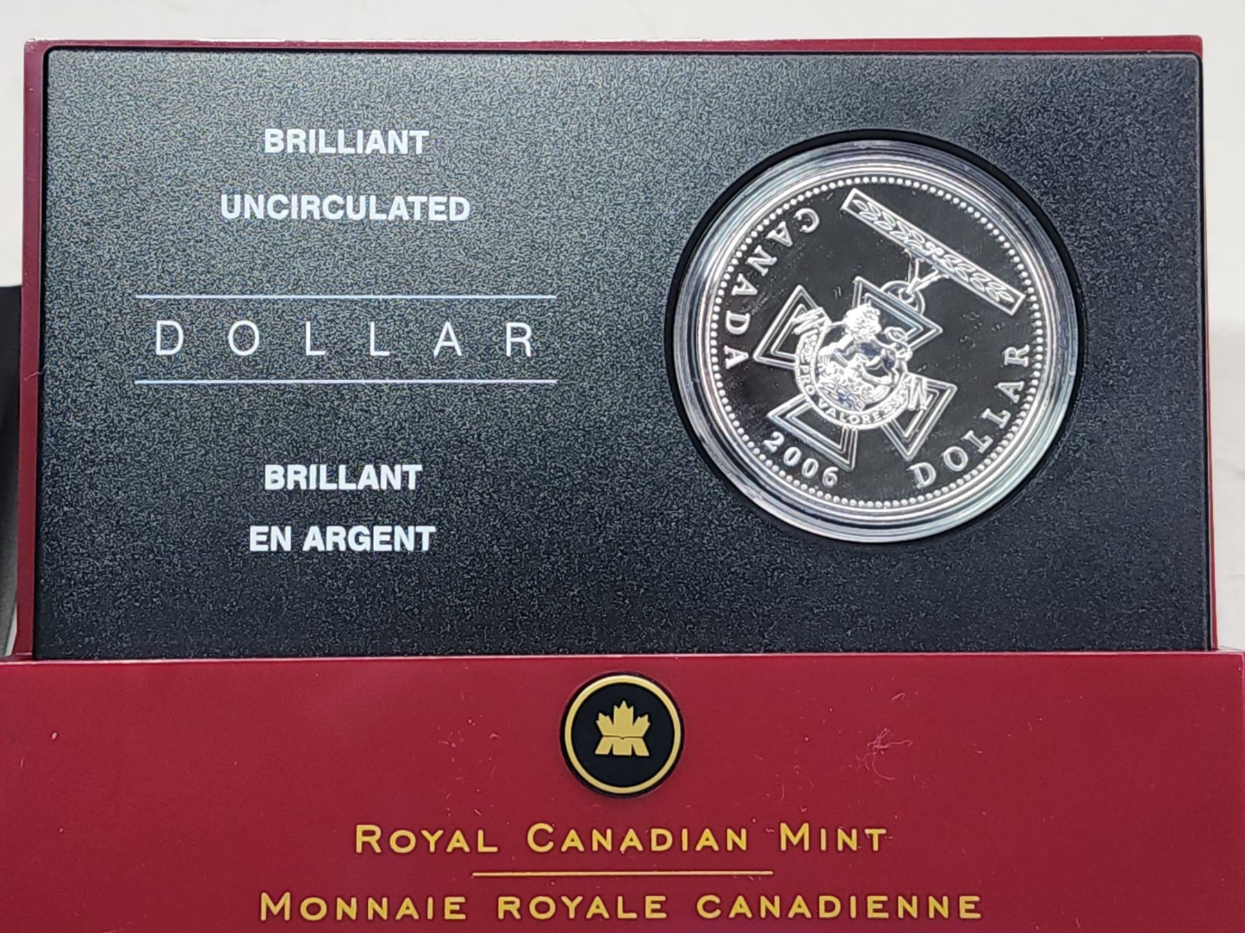 2006 Silver Dollar. Commemorates the Victoria Cross, Canada’s highest military medal. Brilliant Uncirculated. Certificate of Authenticity. Housed in its original Royal Canadian Mint case of issue.