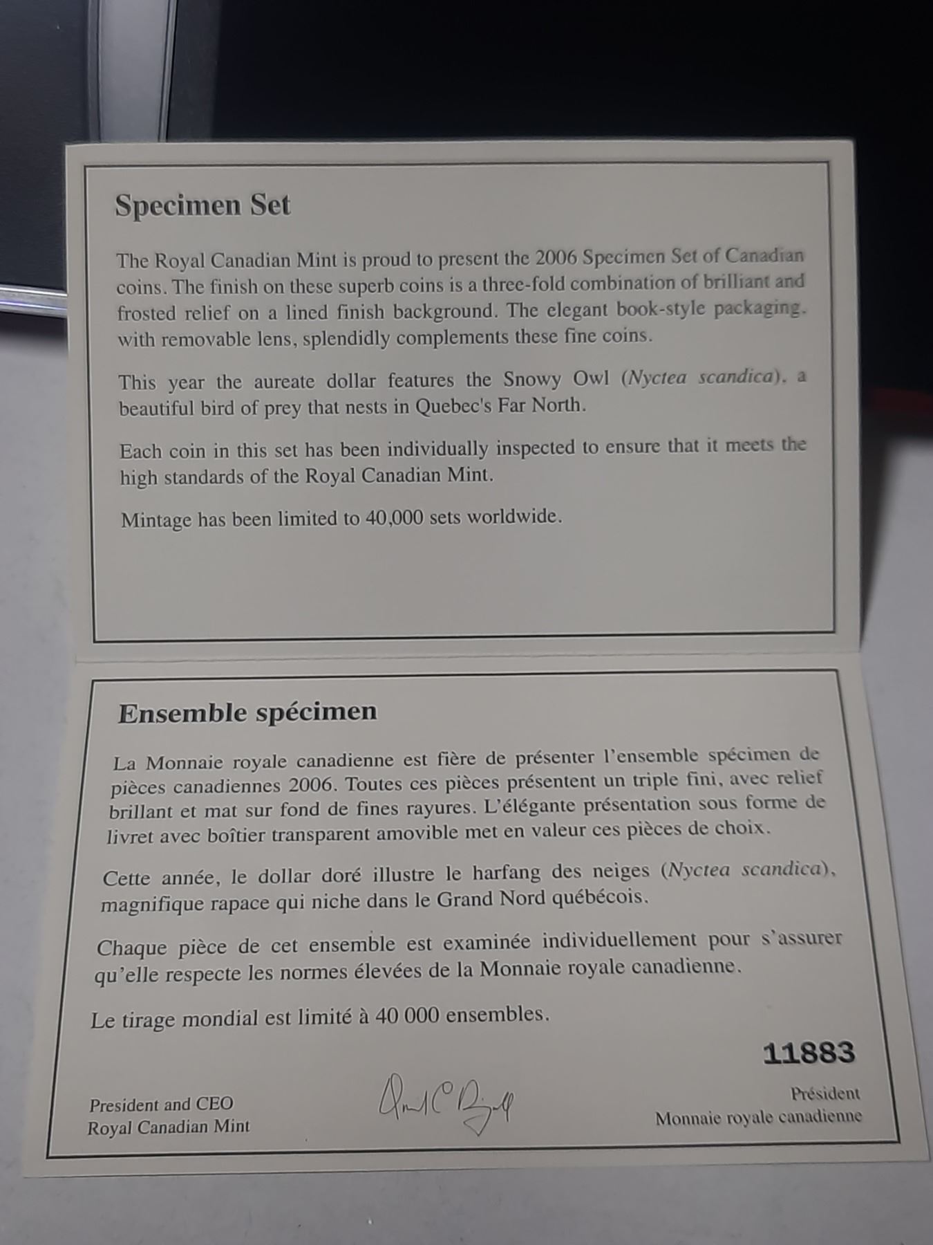 2006 Specimen Set. 7-coin set includes Snowy Owl Loonie Dollar only available in this set.