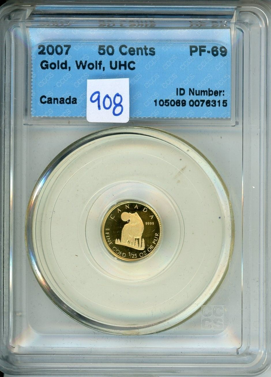 2007 1/25 oz gold - Wolf, Ulta heavy cameo CCCS PF-69