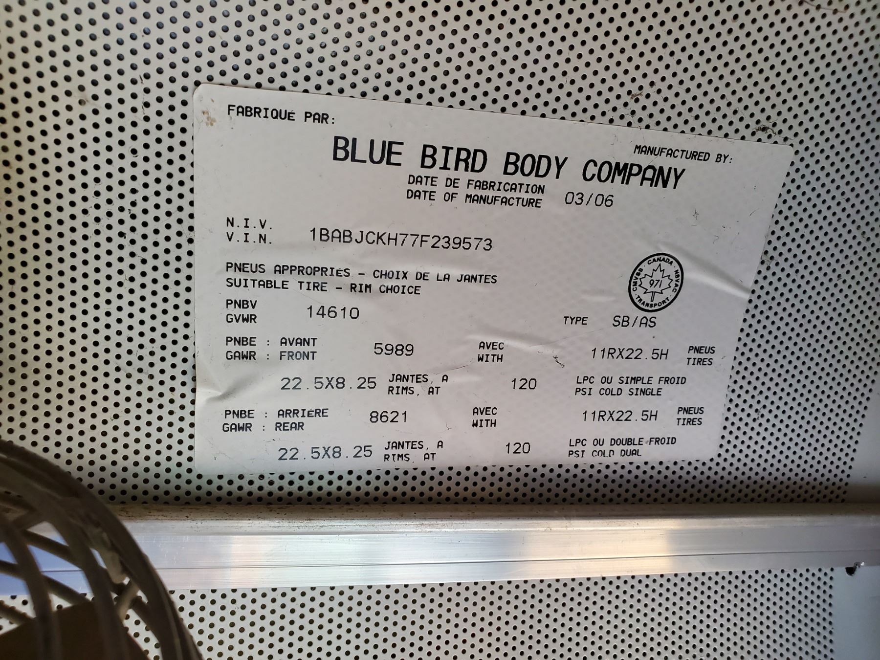 2007 72 PASSENGER BUS VISION BLUE BIRD 1BABJCKH77F239573 (HAS KEYS)
