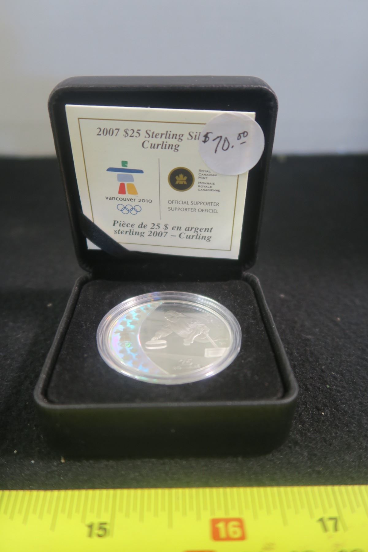 2007 Olympic Curling $25. Proof. Sterling Silver. Issued to celebrate the upcoming Winter Olympics in Vancouver in 2010. Housed in its original case of issue.