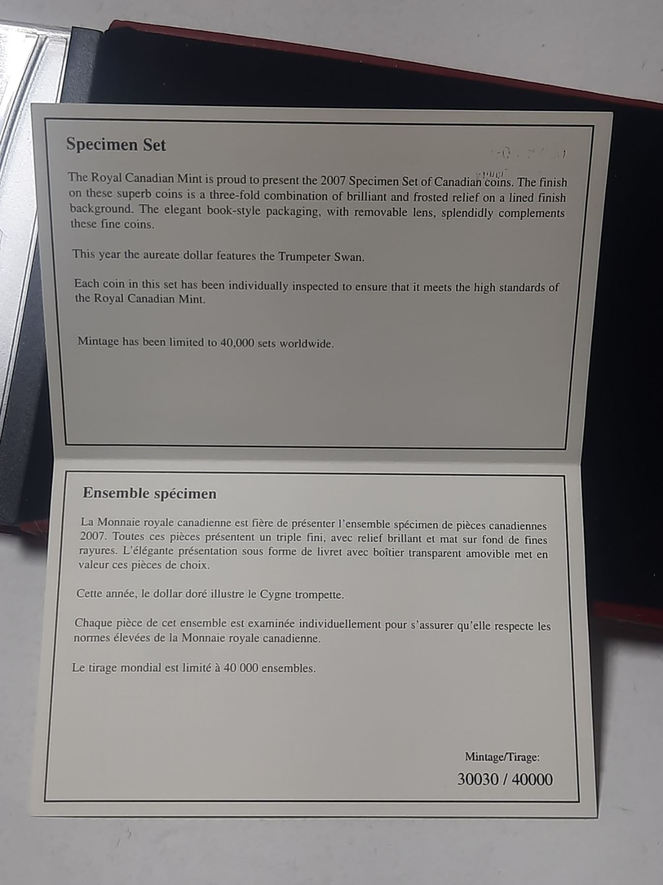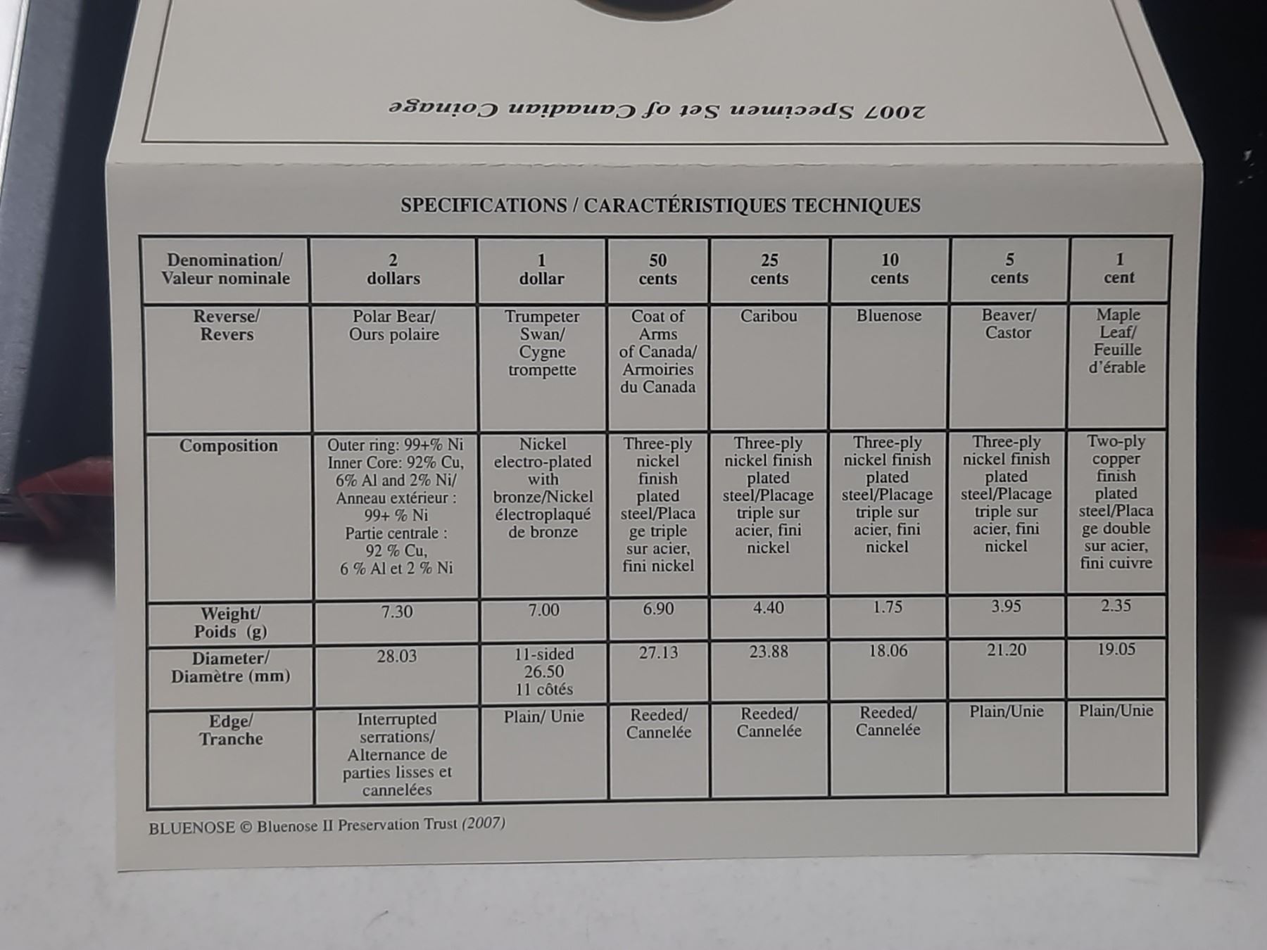 2007 Specimen Set. 7-coin set includes Trumpeter Swans Loonie Dollar only available in this set.