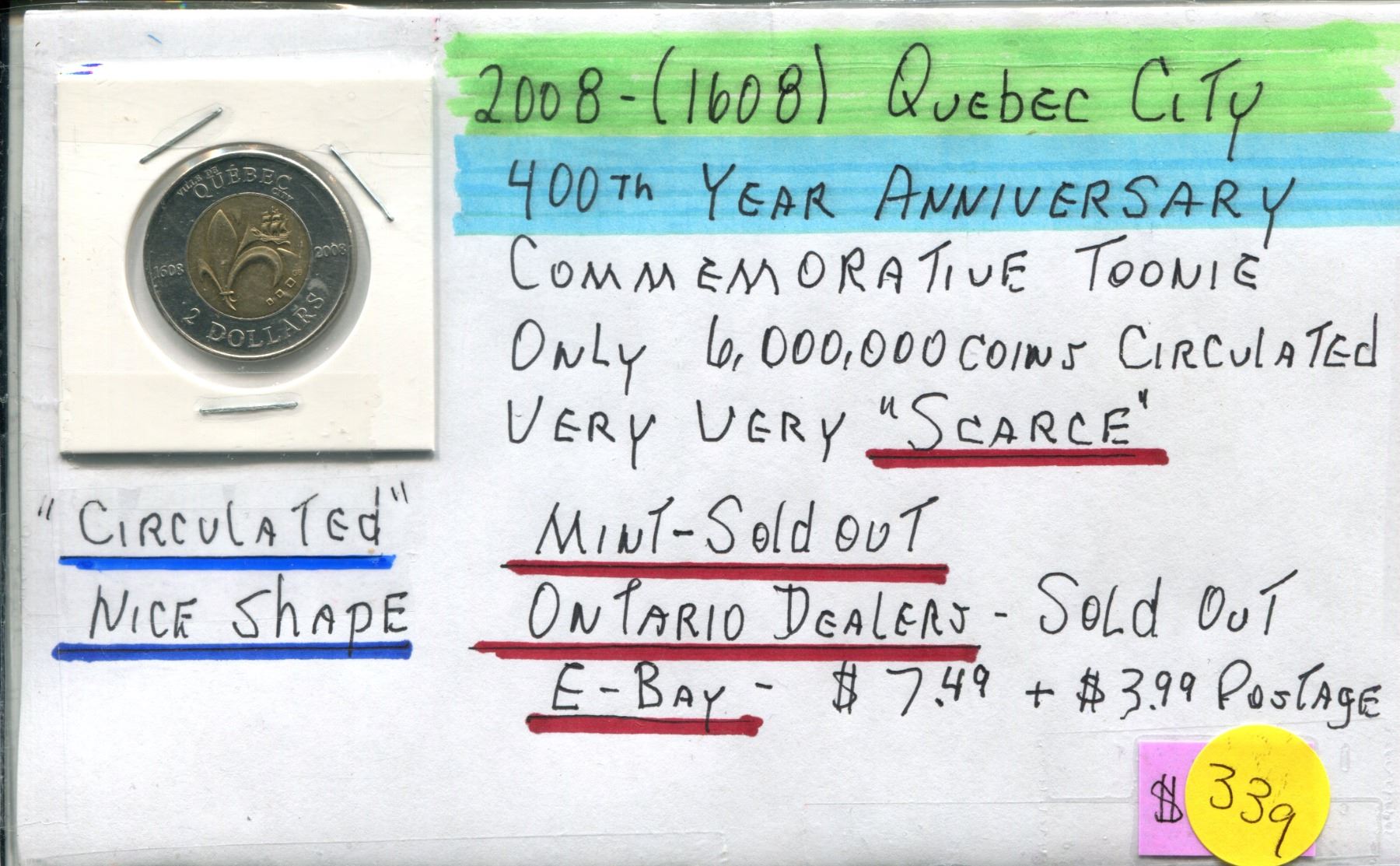 2008 (1603) Quebec City 400th Anniversary Toonie