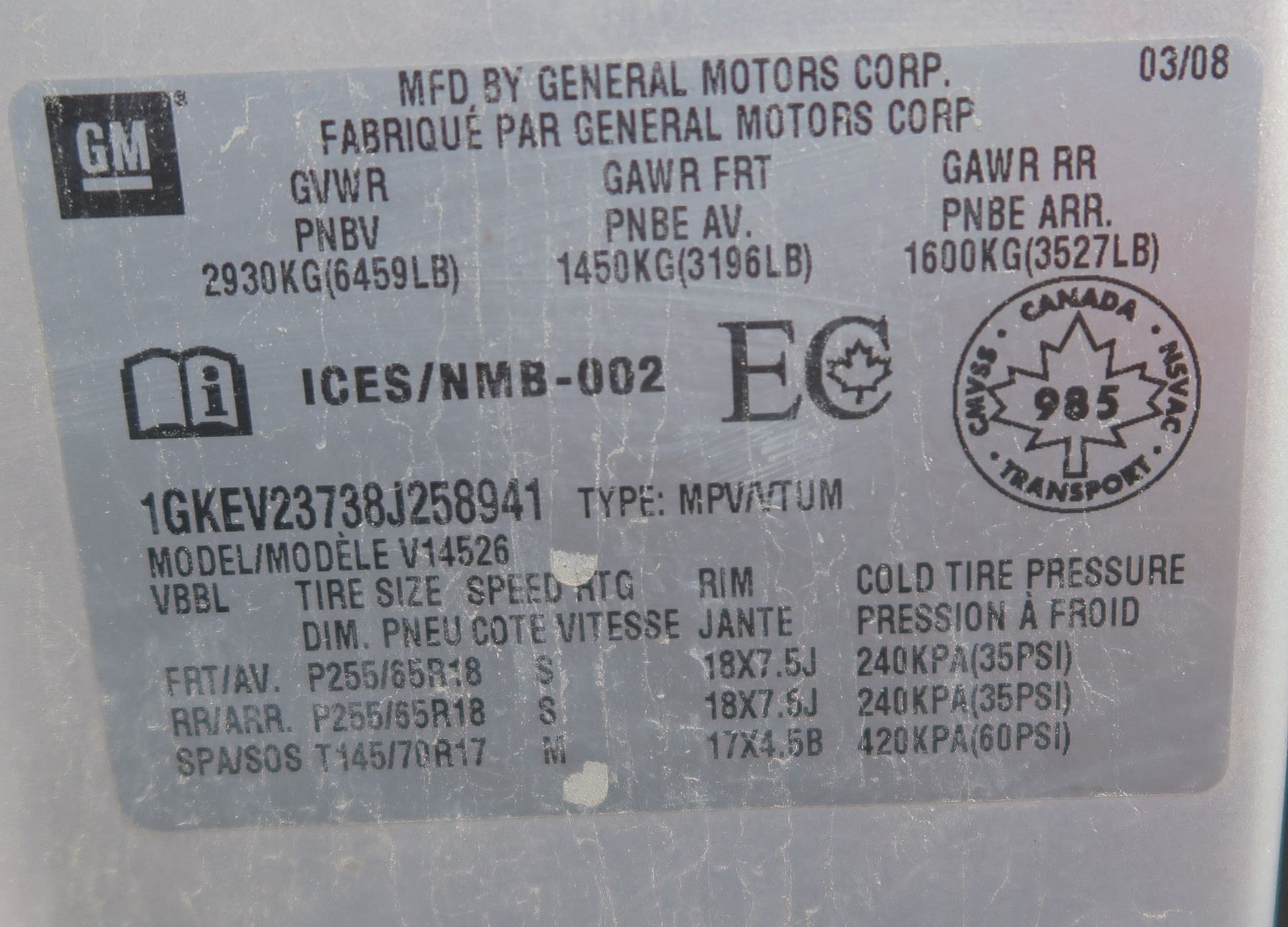 2008 GMC ACADIA SLT V6 AWD 1GKEV23738J258941 (NO KEYS) Sold As Is - SGI Online VIN Lookup: https://www.sgi.sk.ca/vin