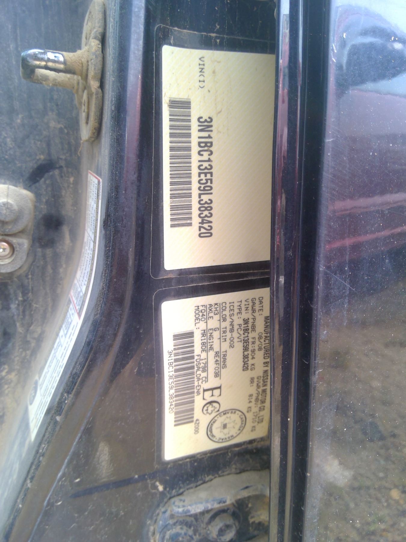 2008 Nissan Versa VIN 3N1BC13E59L383420