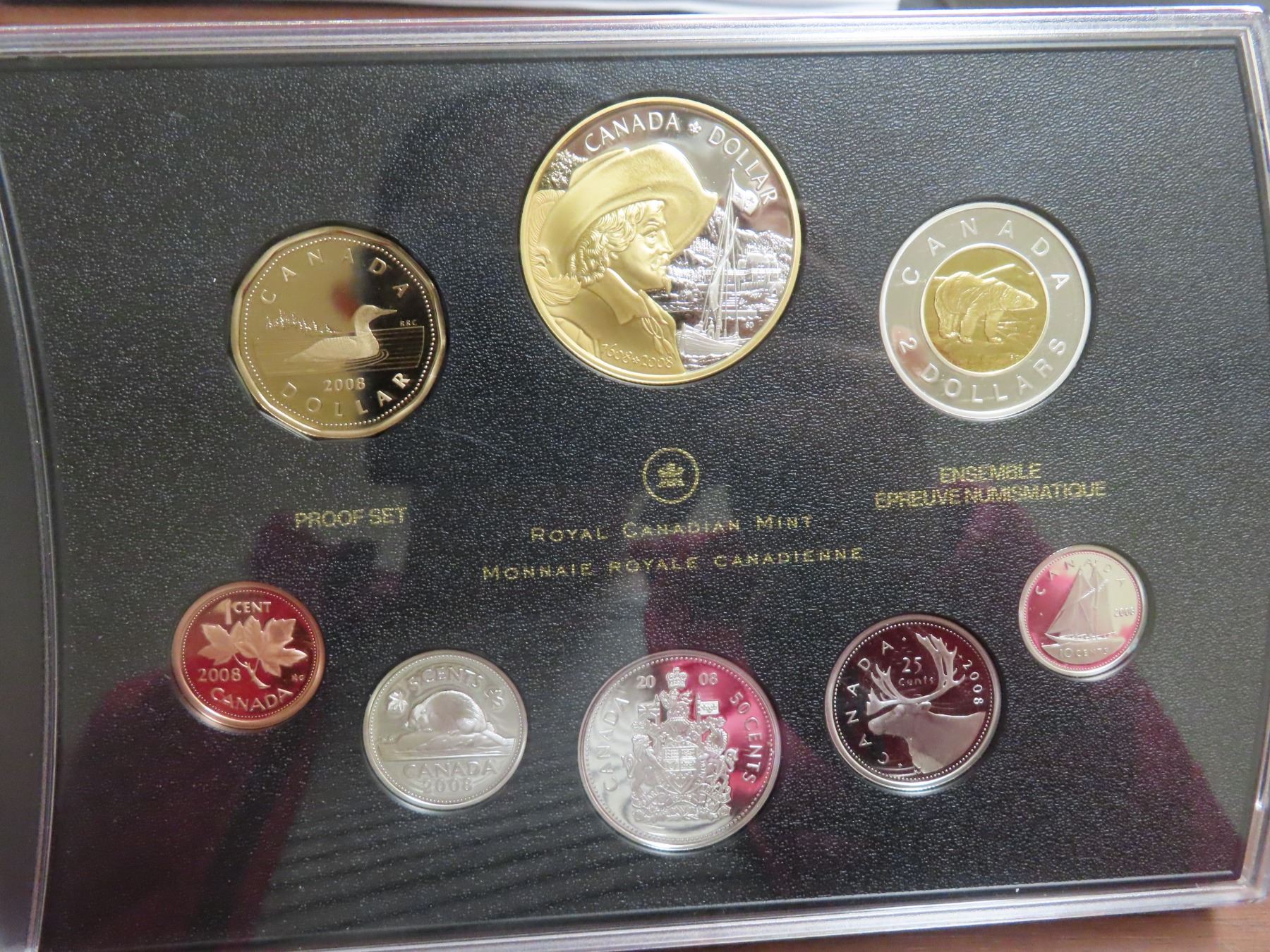 2008 canada silver proof set, gold-plated dollar
