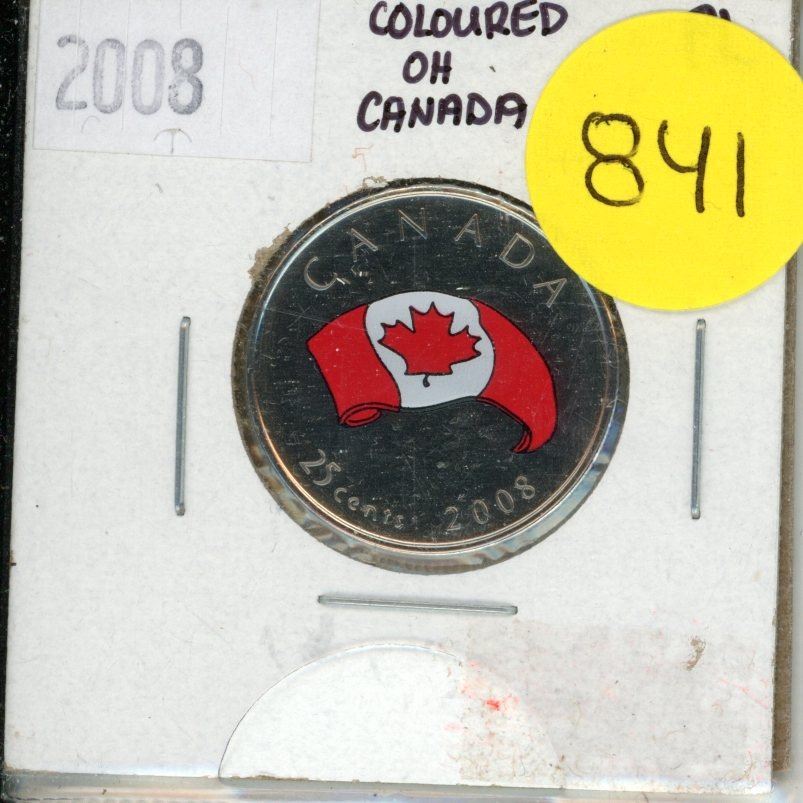 2008L- Oh! Canada Canadian Flag - Colourised 25 cents coin