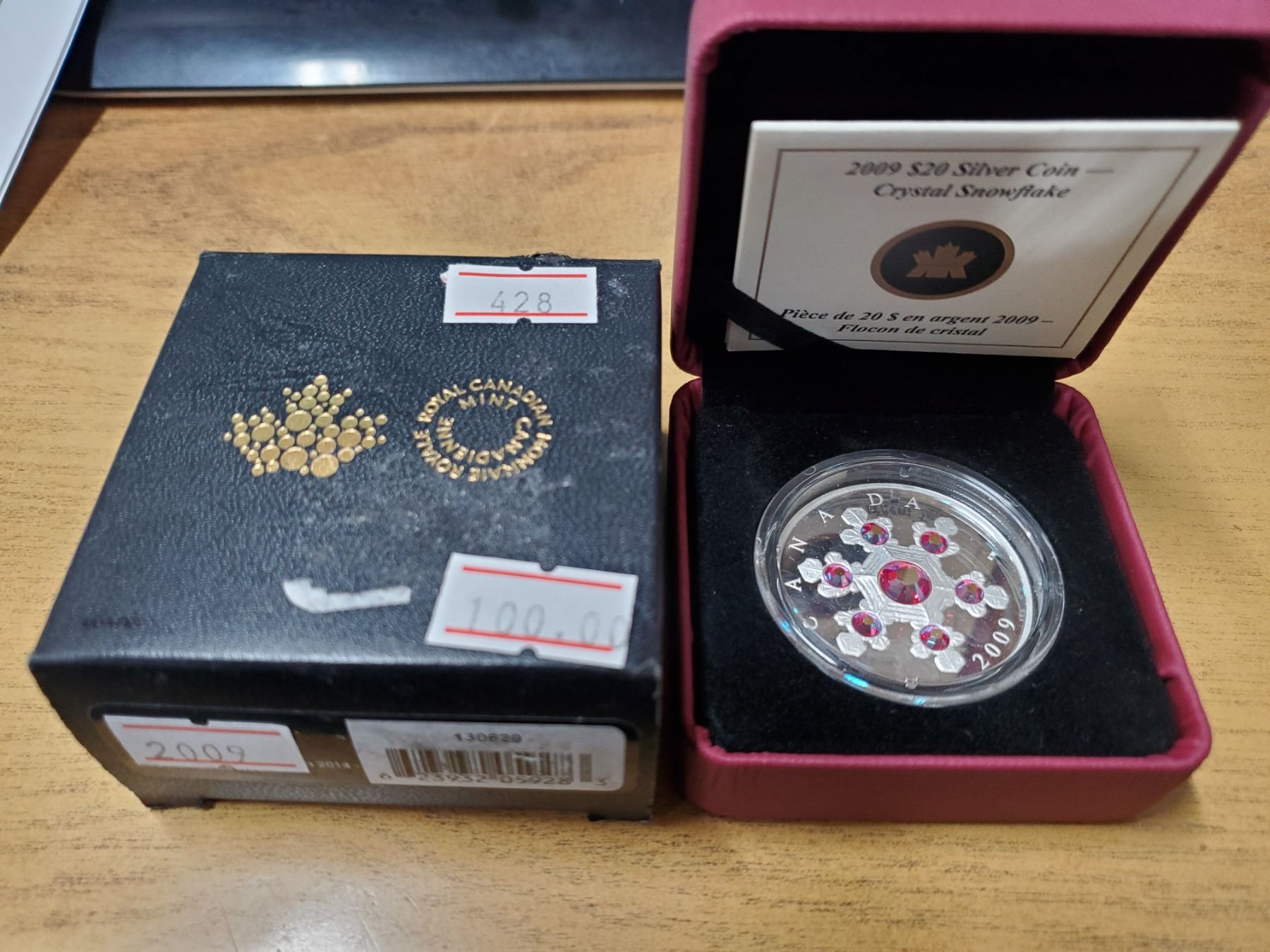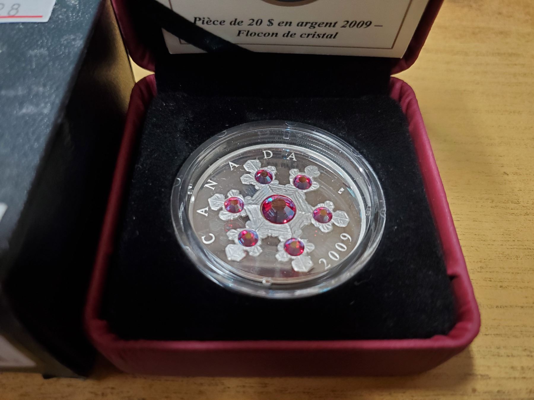 2009 $20 FINE SILVER COIN 'RED CRYSTAL SNOWFLAKE'