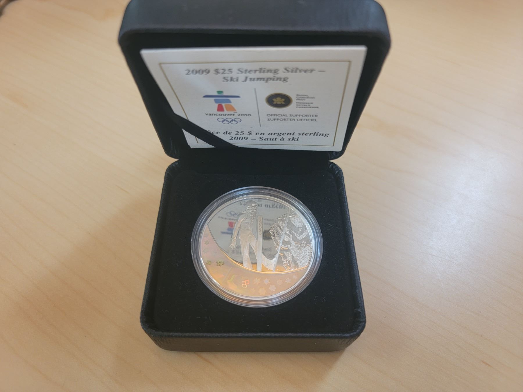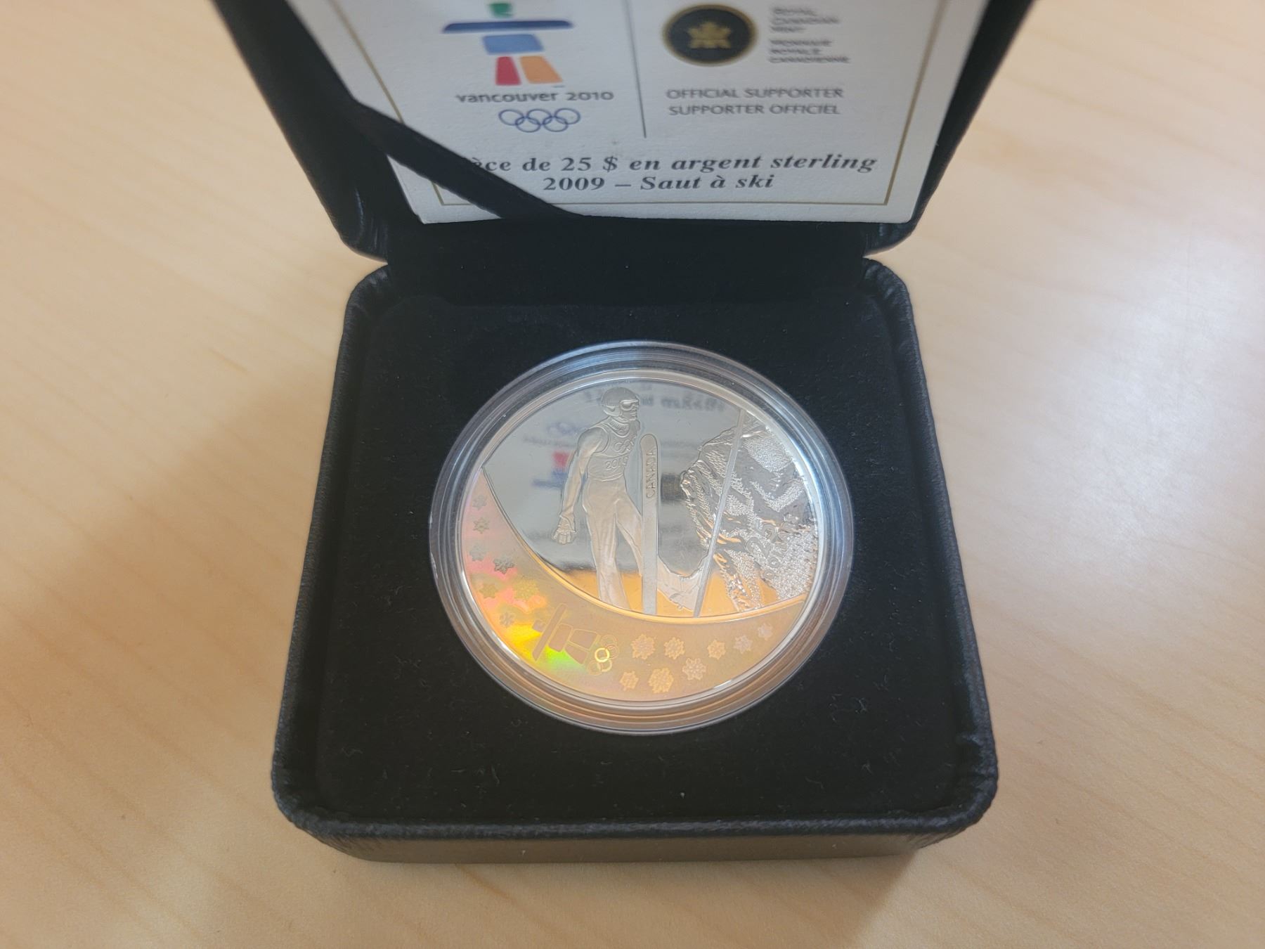 2009 Canada $25 sterling silver Olympic ski jumping, hologram with case