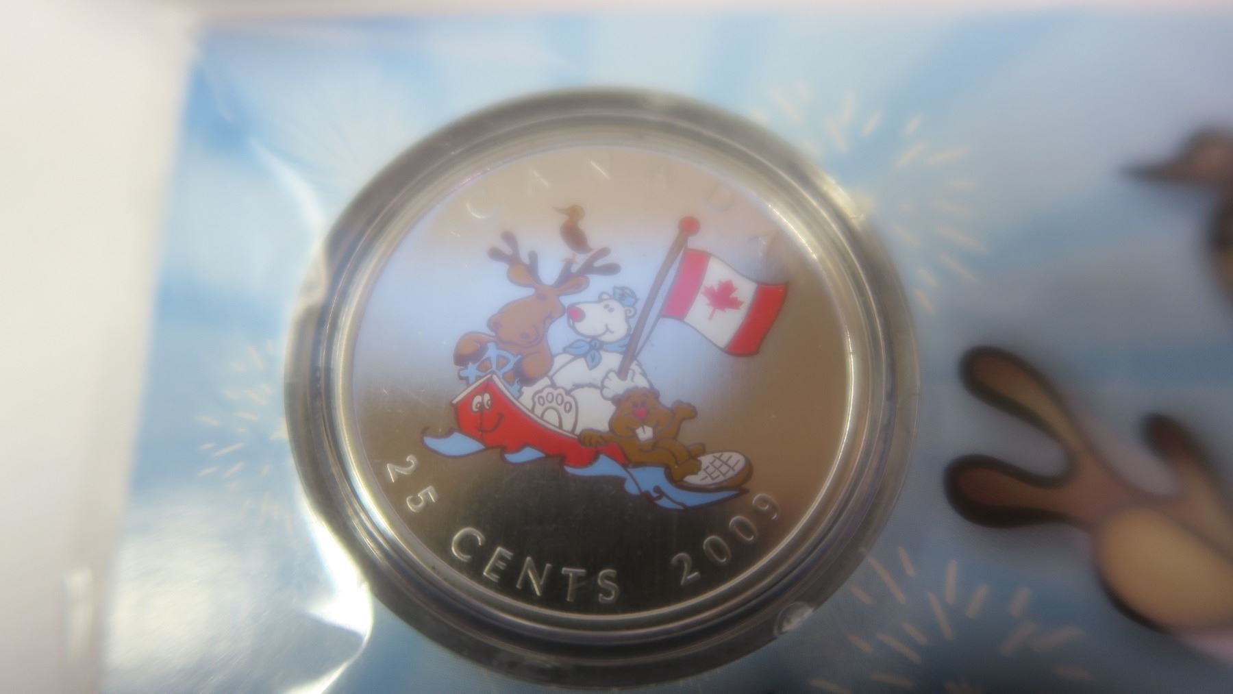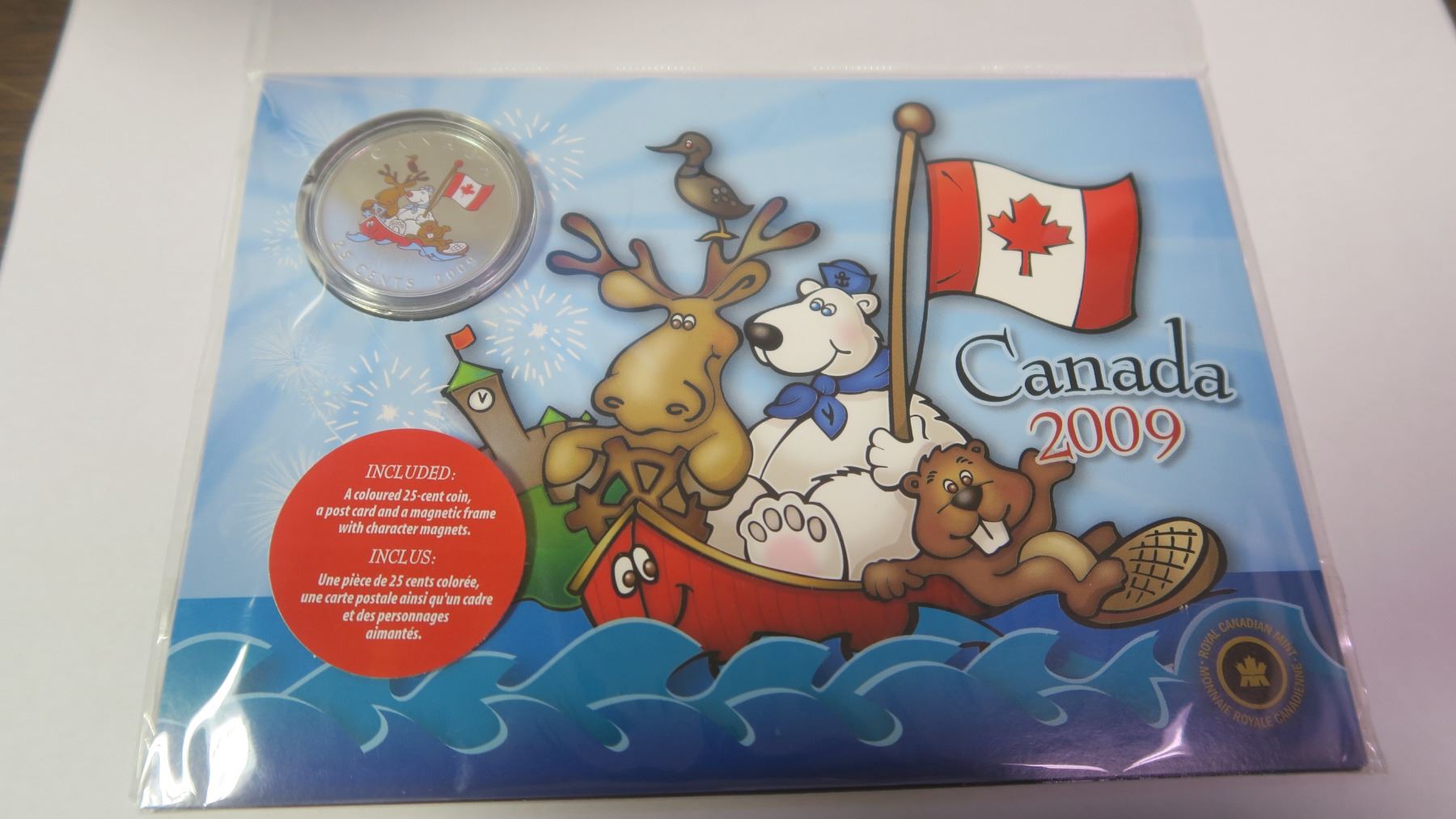 2009 Colourized 25 Cents, a post-card and a magnetic frame with character magnets, housed in an unopened Royal Canadian Mint folder. Specimen.