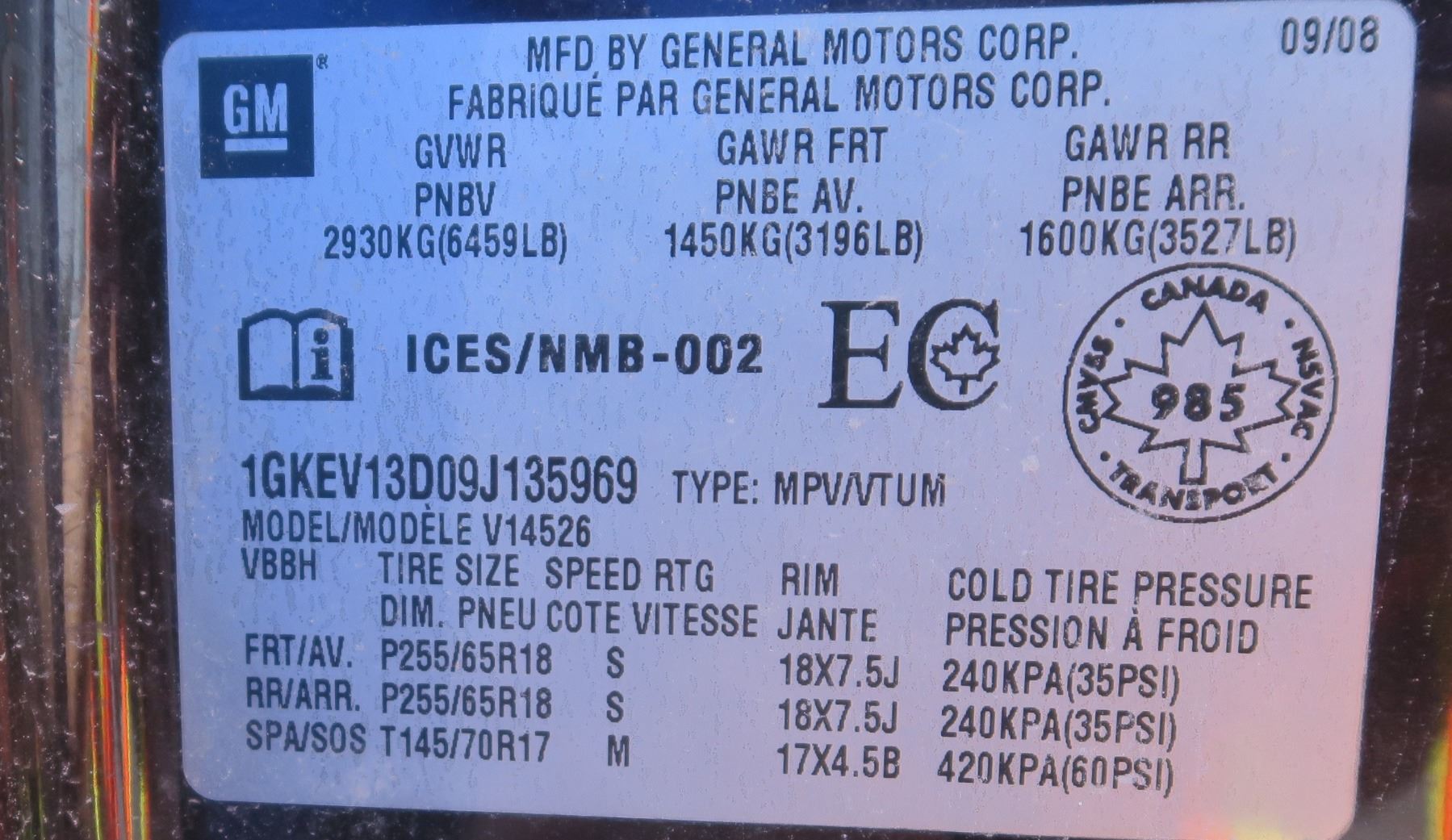 2009 GMC ACADIA SLE V6 AWD 1GKEV13D09J135969 (No Keys) Sold As Is - SGI Online VIN Lookup: https://www.sgi.sk.ca/vin