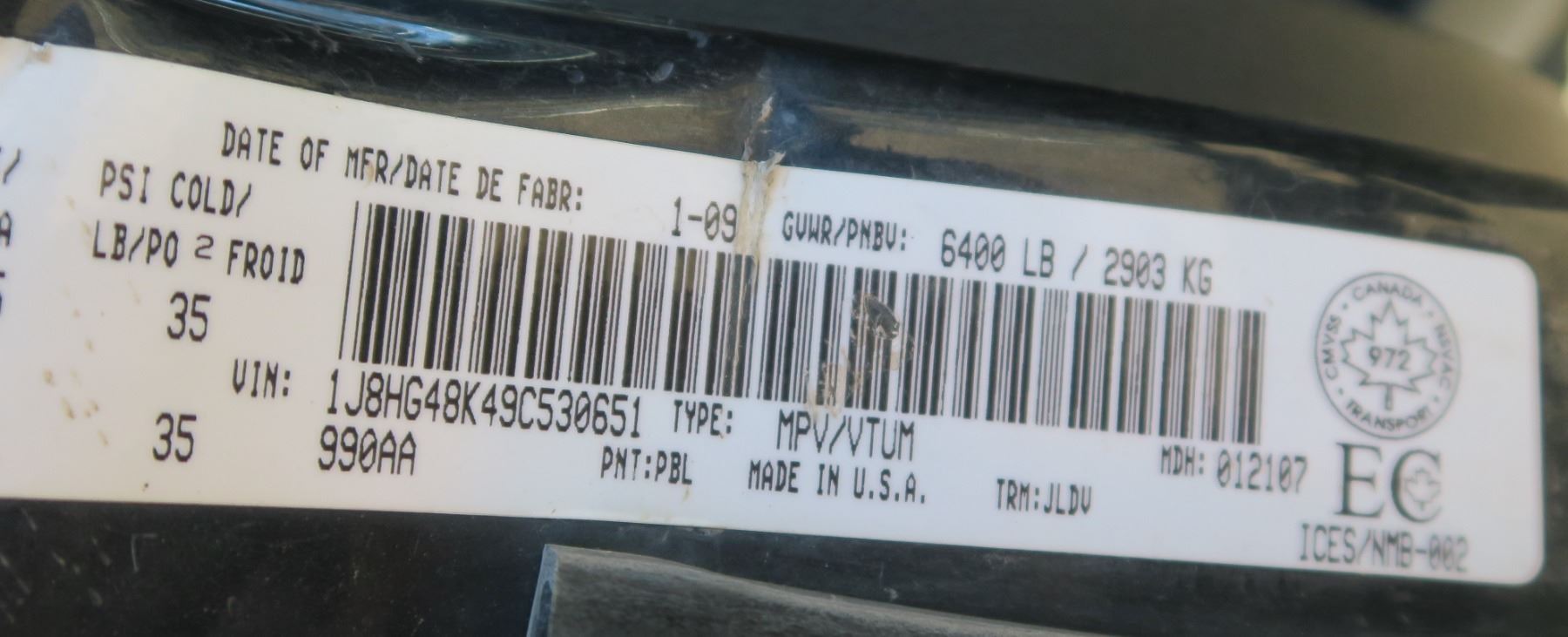 2009, JEEP COMMANDER SPORT 4WD - 1J8HG48K49C530651 - (No Keys) Sold As Is