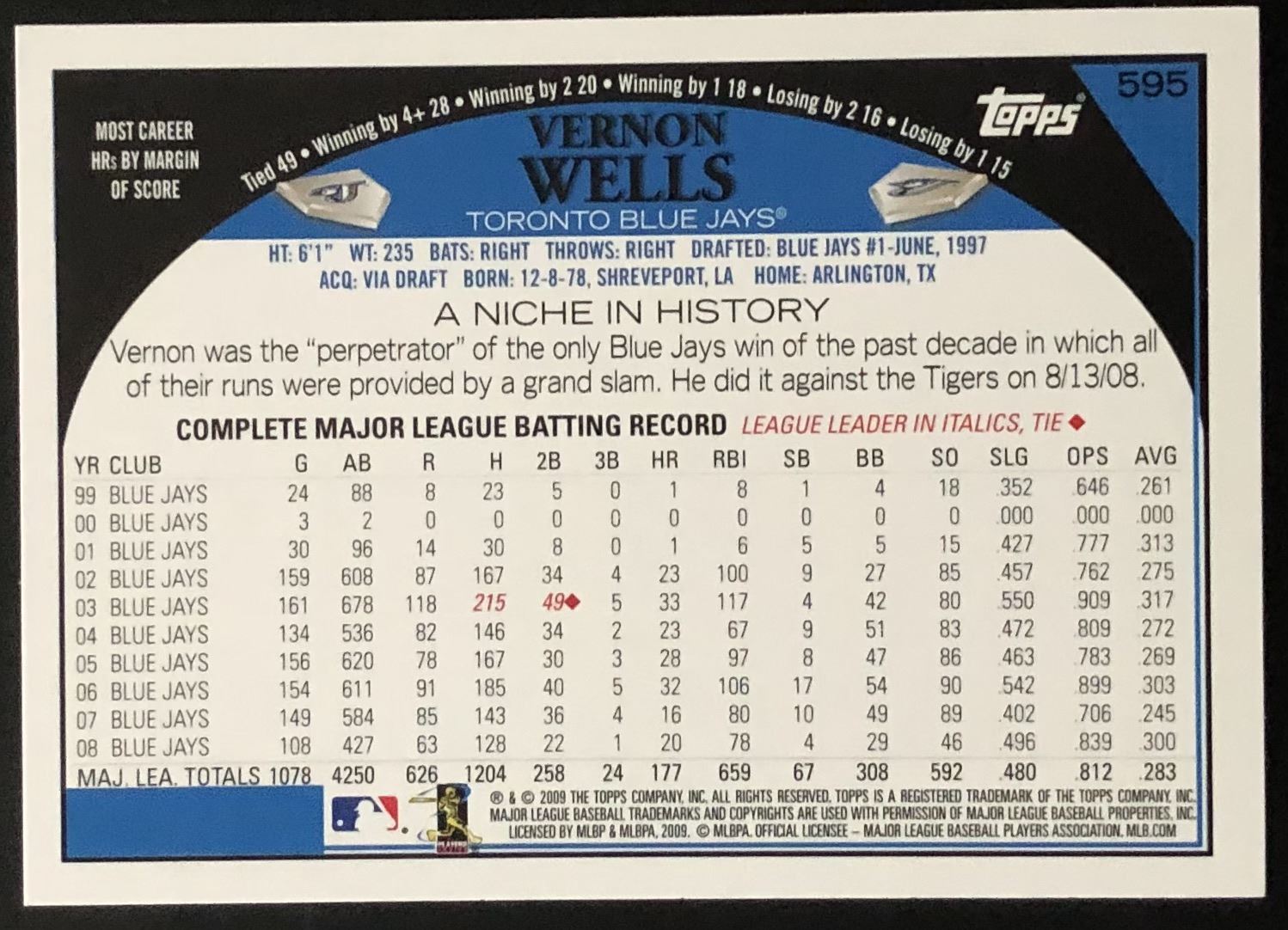 Card #595 MLB, baseball