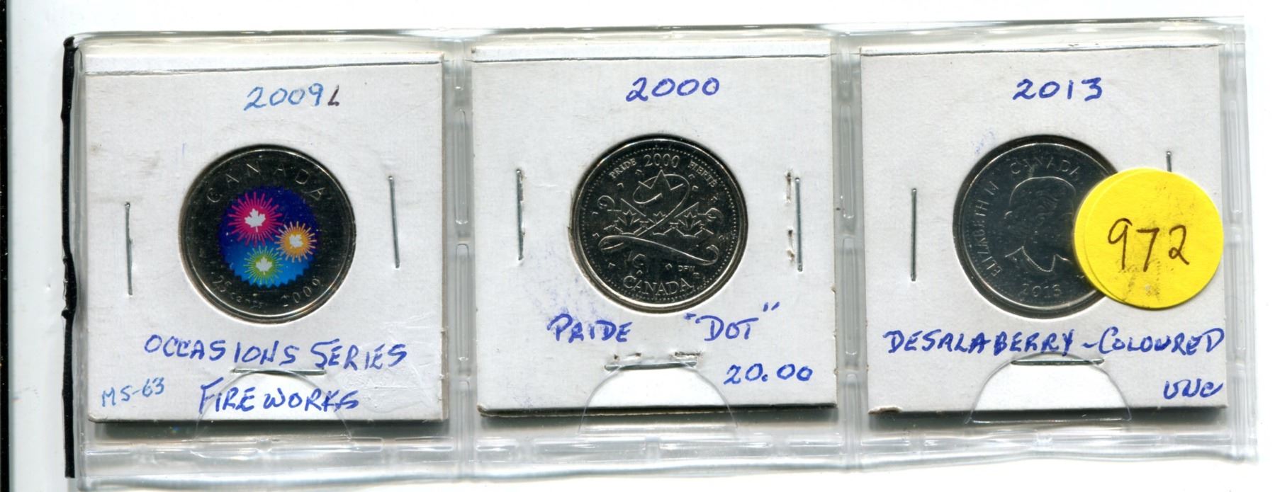 2009L Fireworks, 20.00 Fride Dot, 2013 de Salaberry Coloured, Twenty-Five Cent Coins