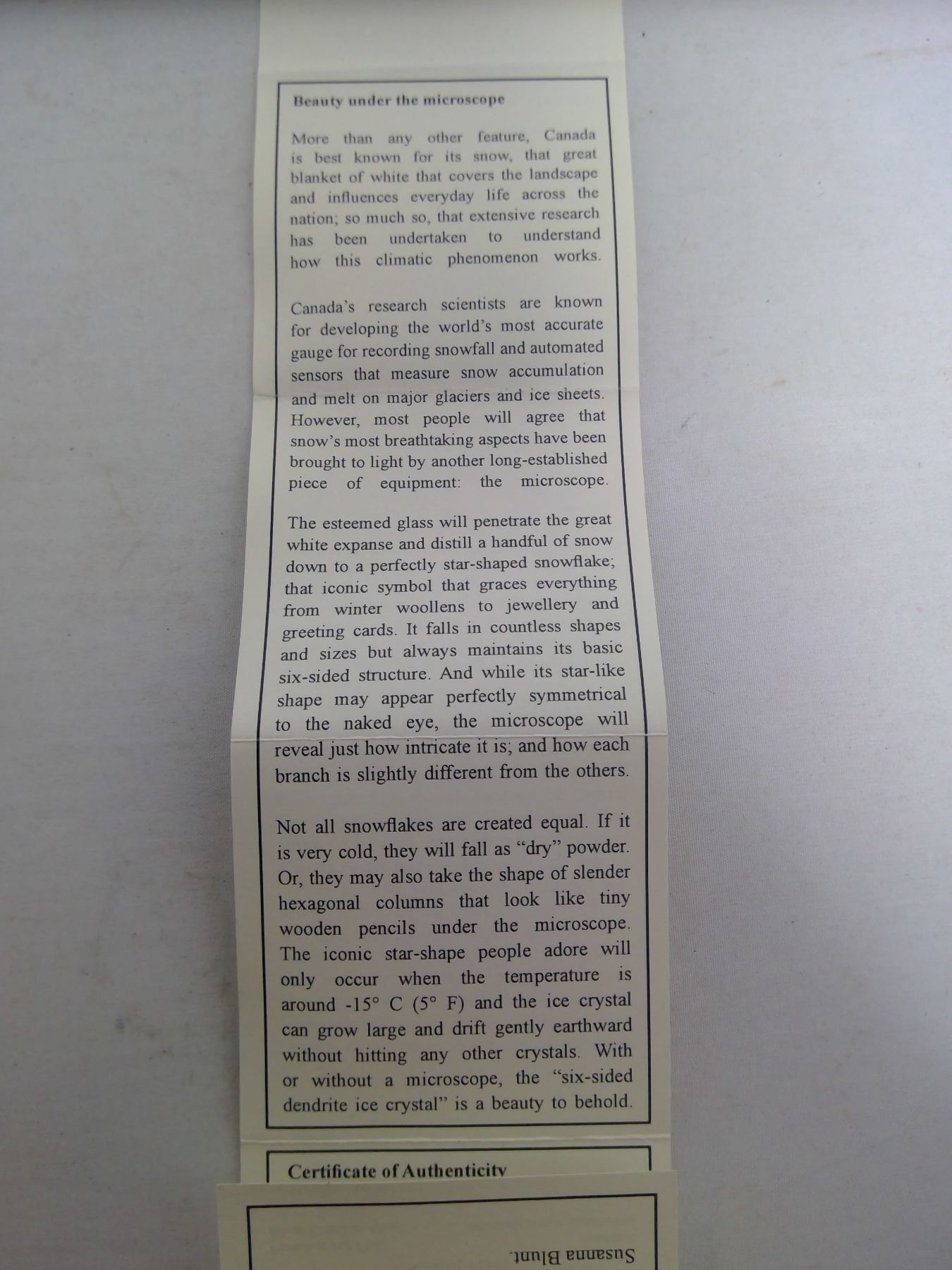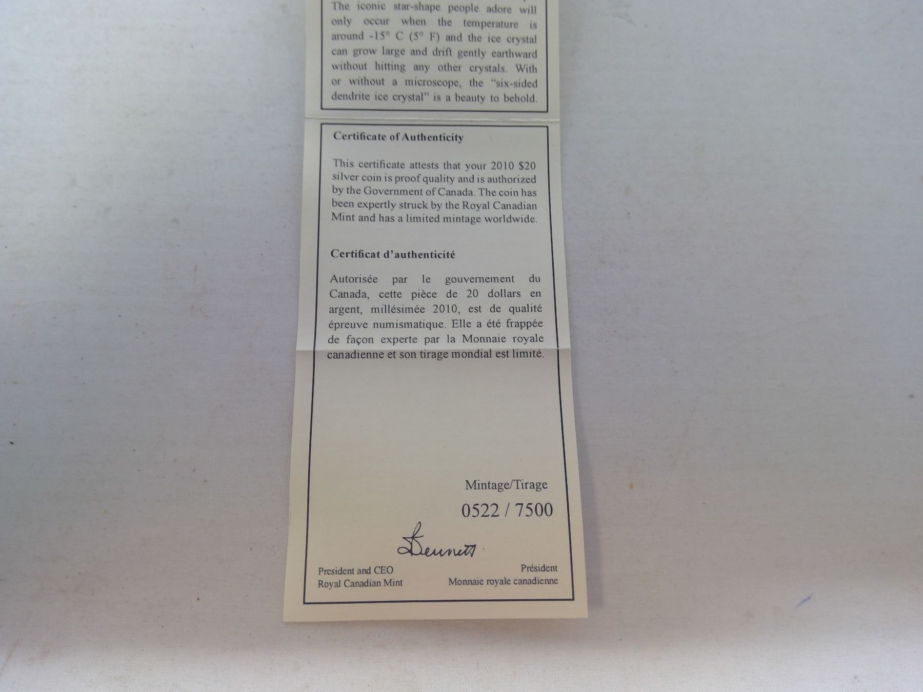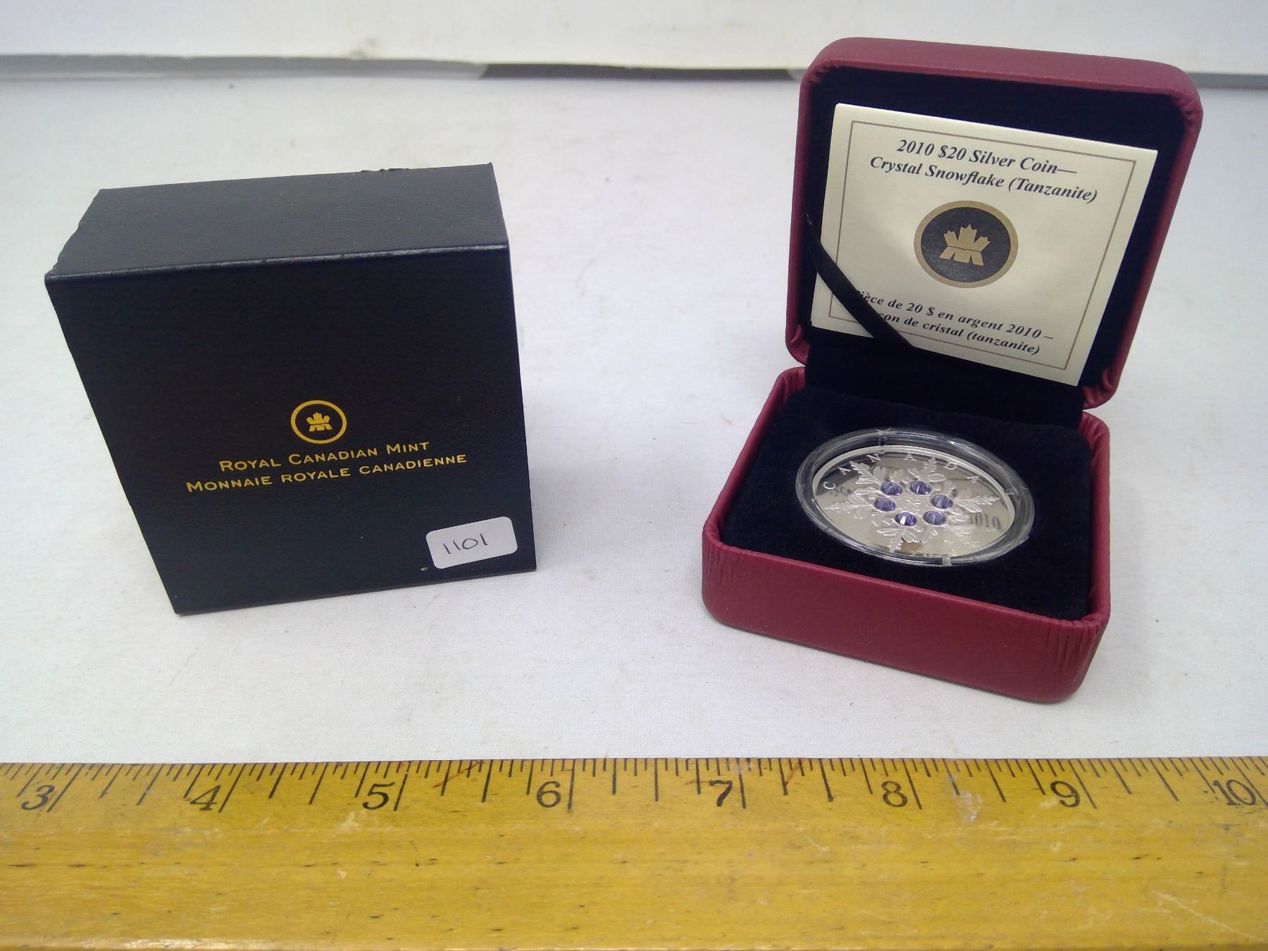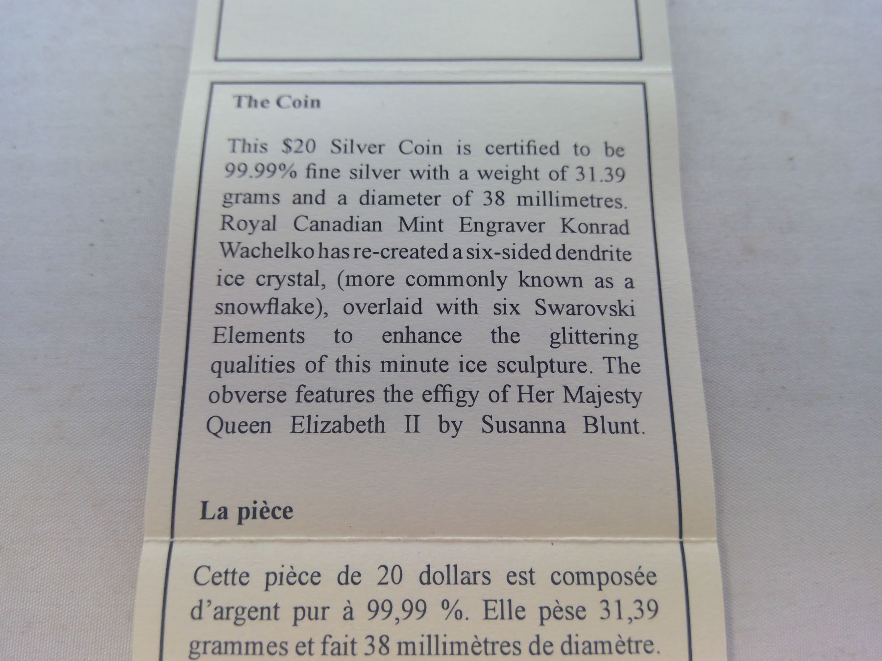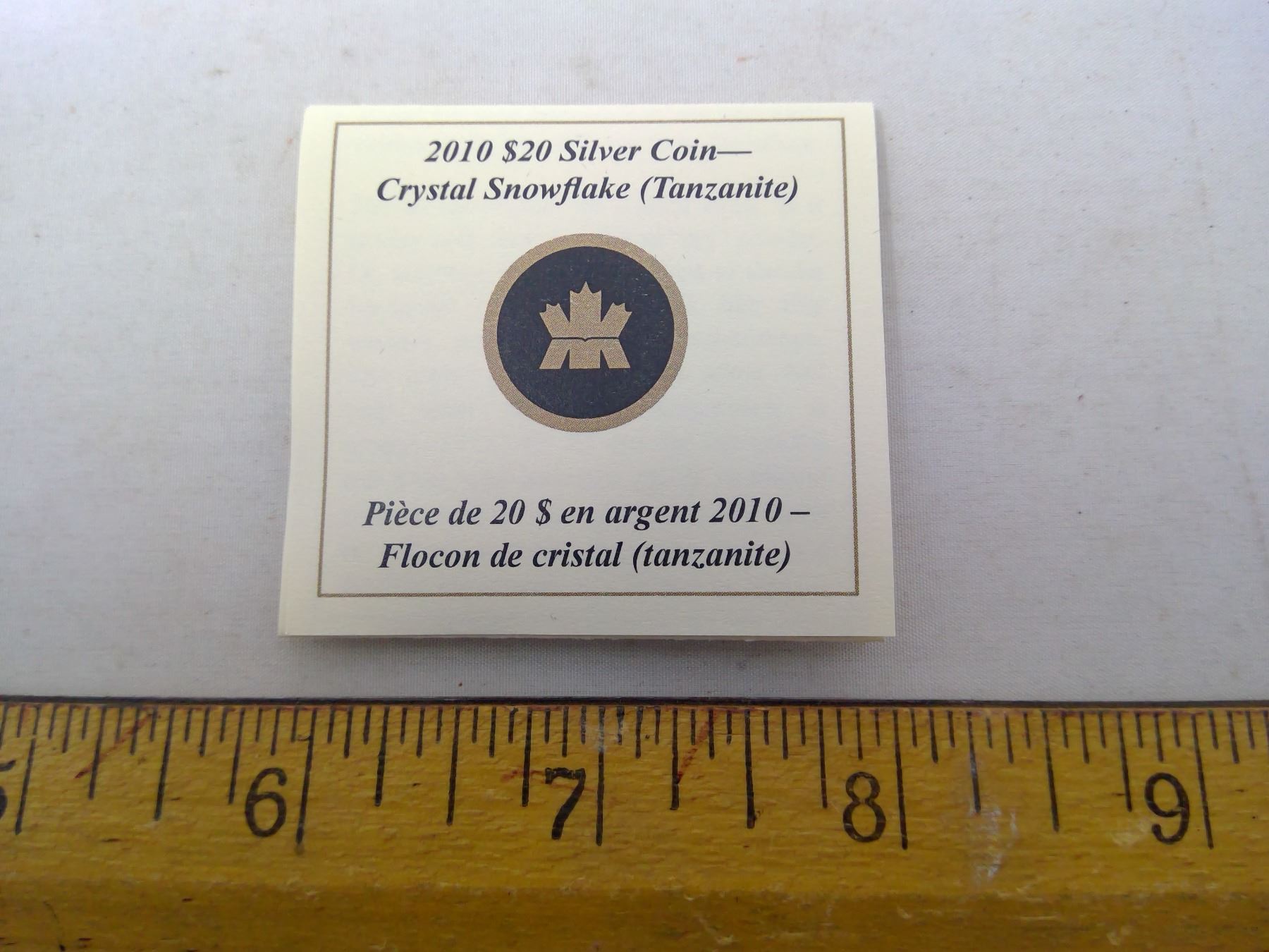 2010 - $20.00 FINE SILVER COIN - CRYSTAL SNOWFLAKE (TANZANITE)