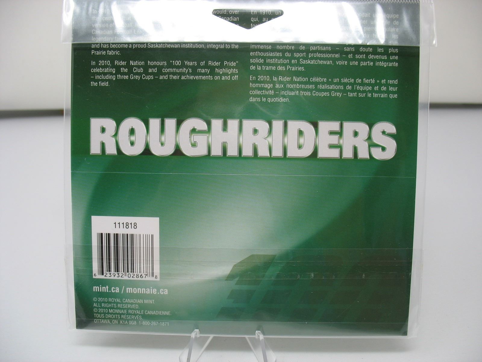 2010 SASKATCHEWAN ROUGHRIDERS DOLLAR COIN as issued by the Mint