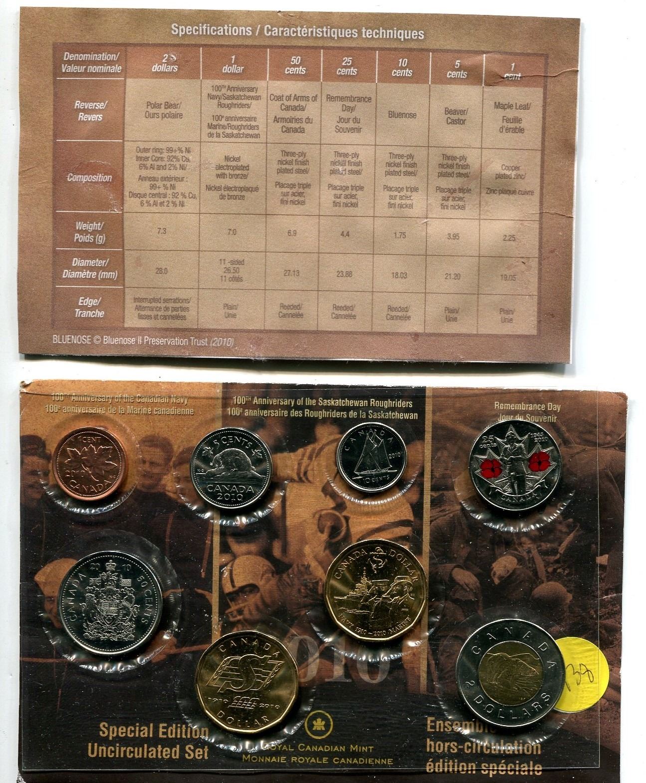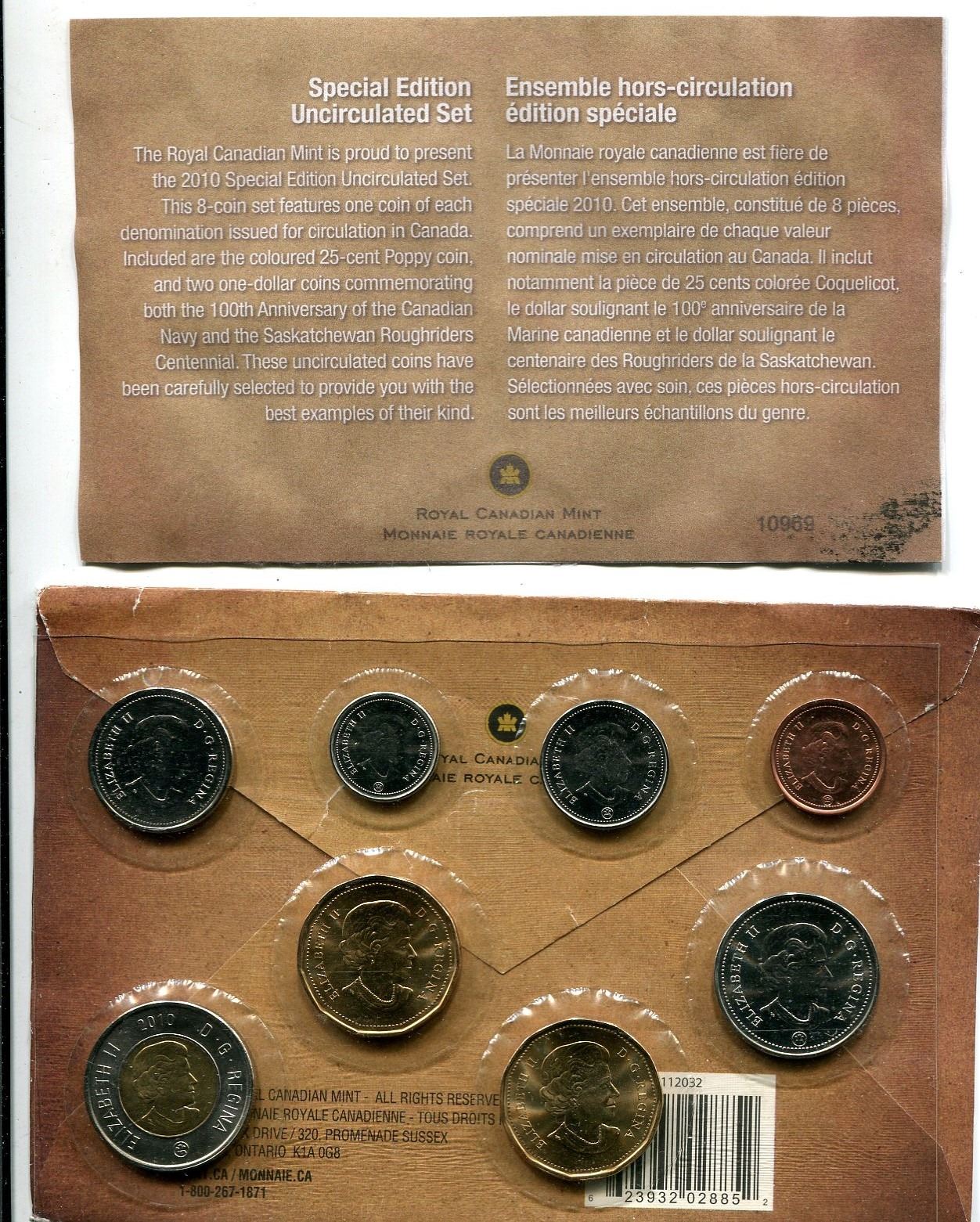 2010 special edition uncirculated set with poppy quarter, navy and rider loonies