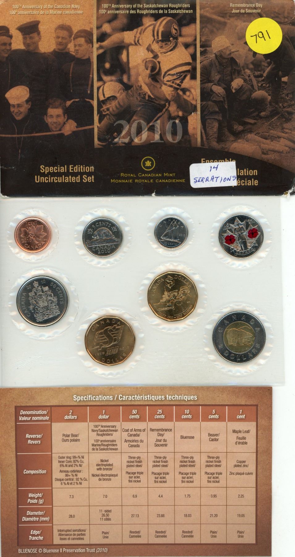2010- Special edition uncirculated set -toonie has 14 serrations
