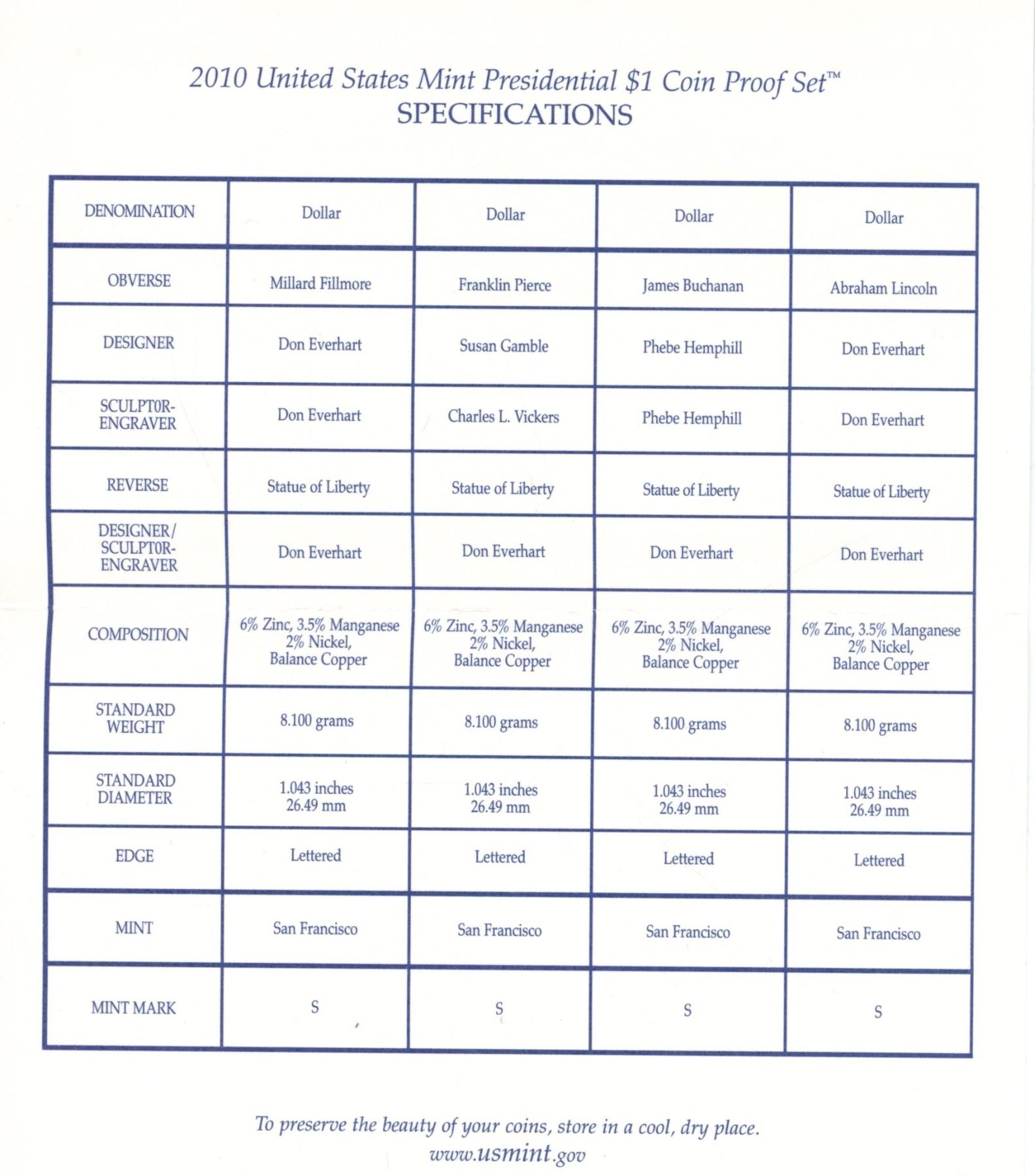 2010s United States Mint Presidential 1 Dollar Coin proof set