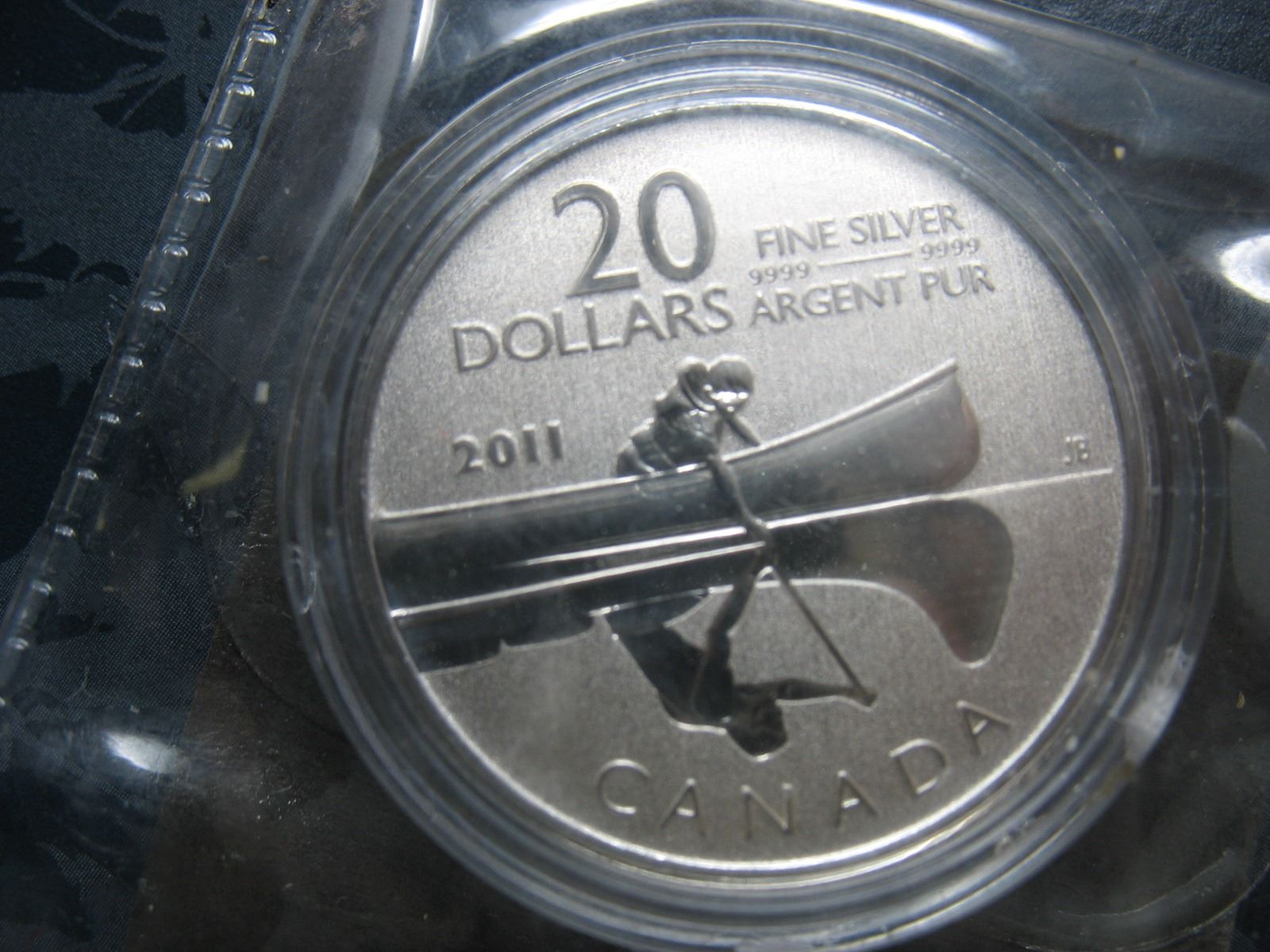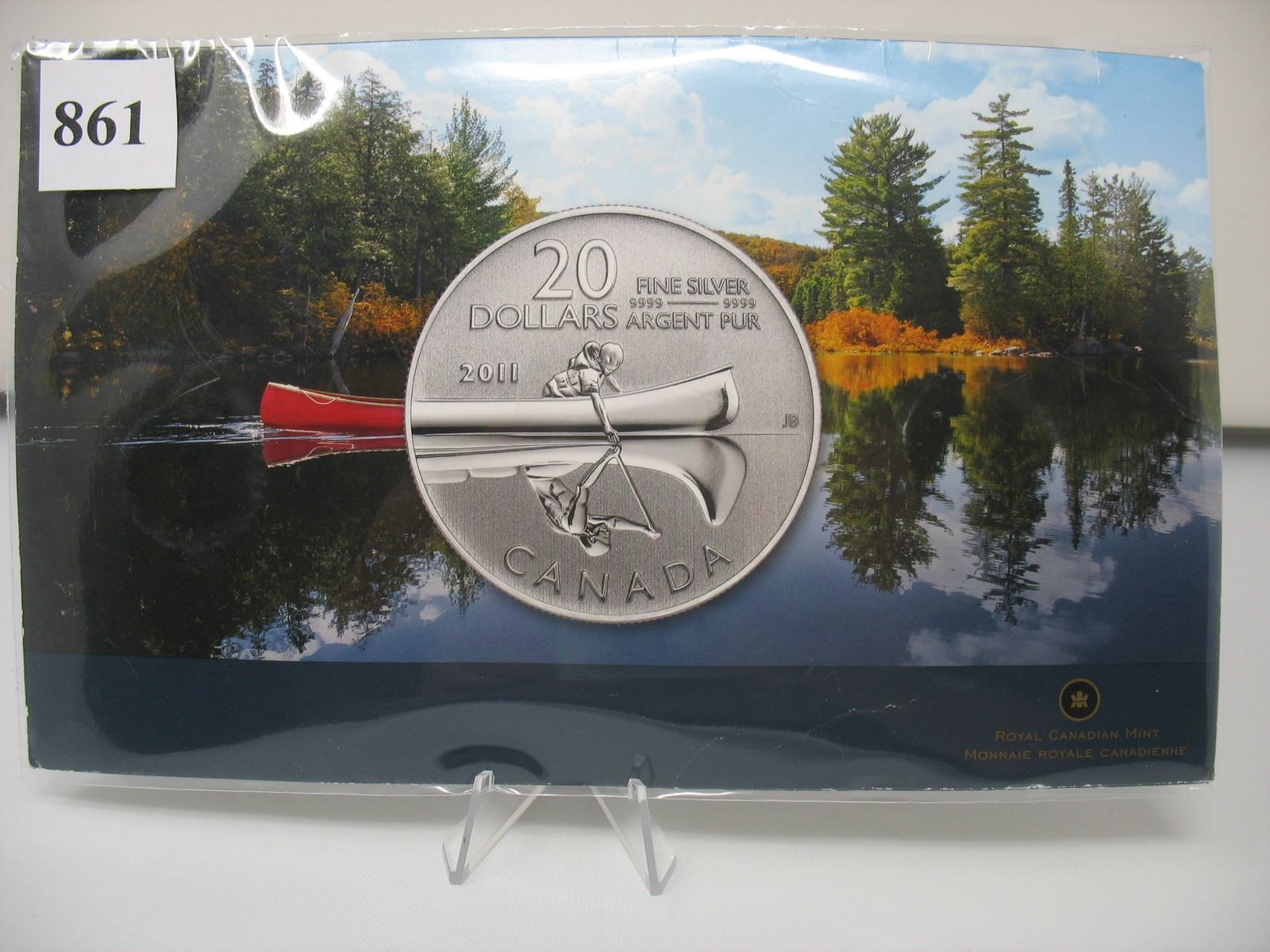 2011 CANADIAN $20 SILVER COIN - .9999 PURE SILVER - CANOE & REFLECTION