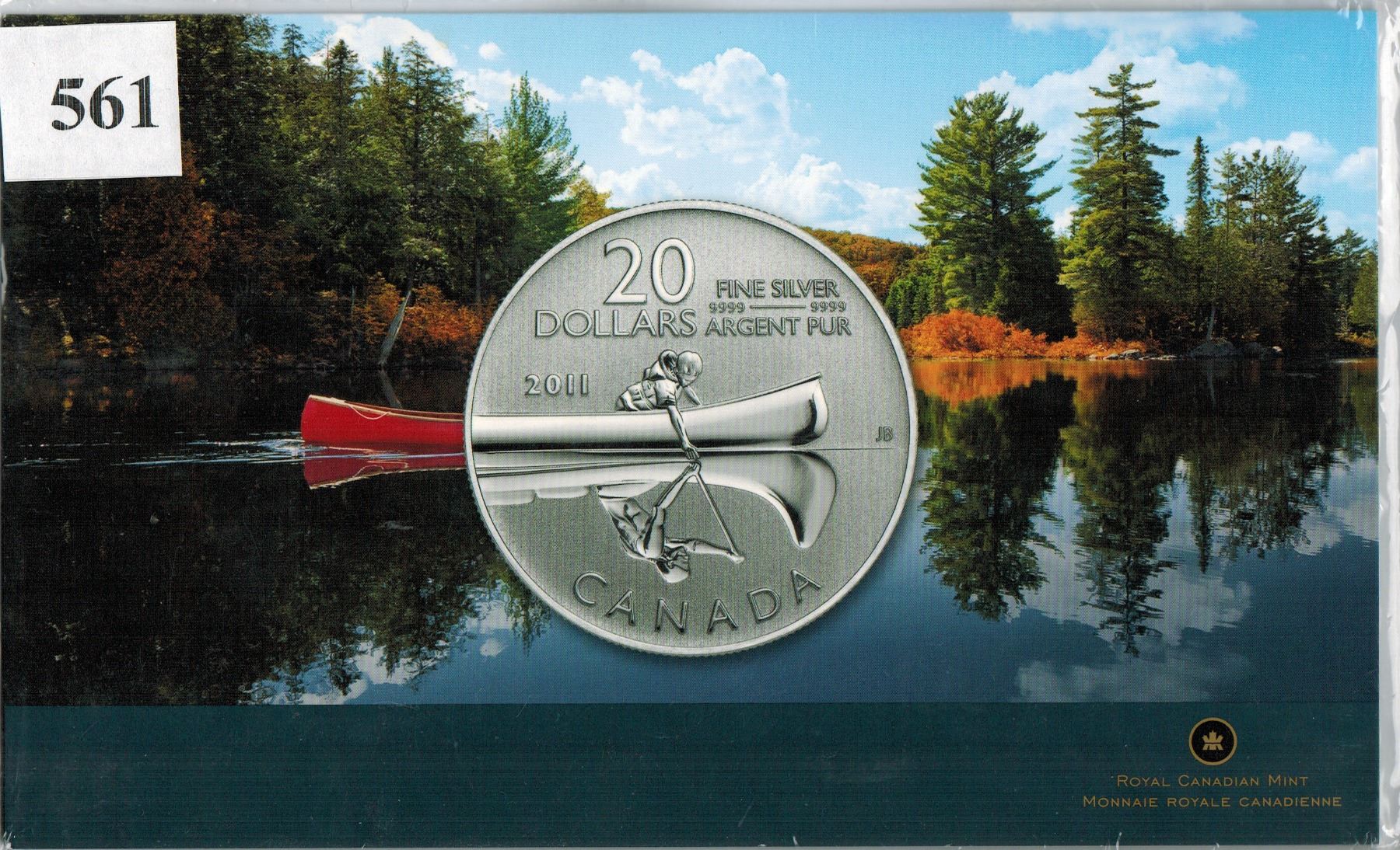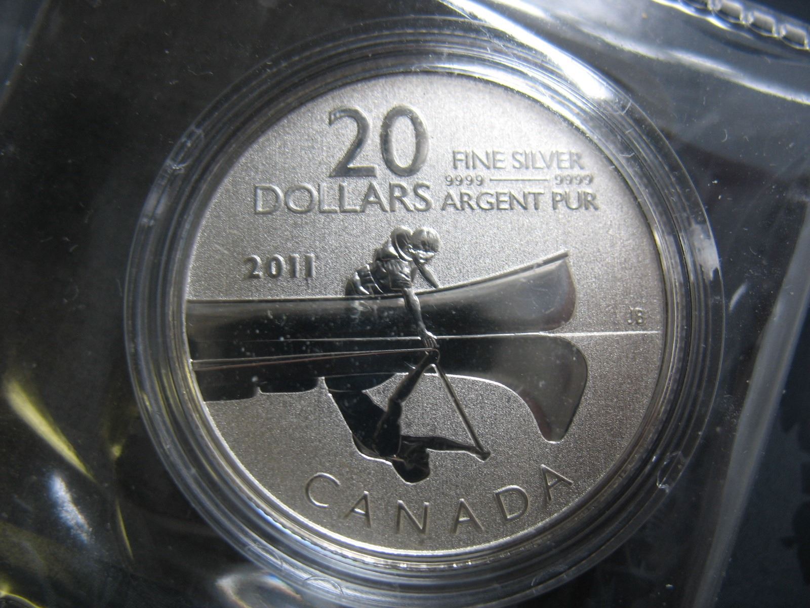 2011 CANADIAN $20 SILVER COIN - .9999 PURE SILVER - CANOE