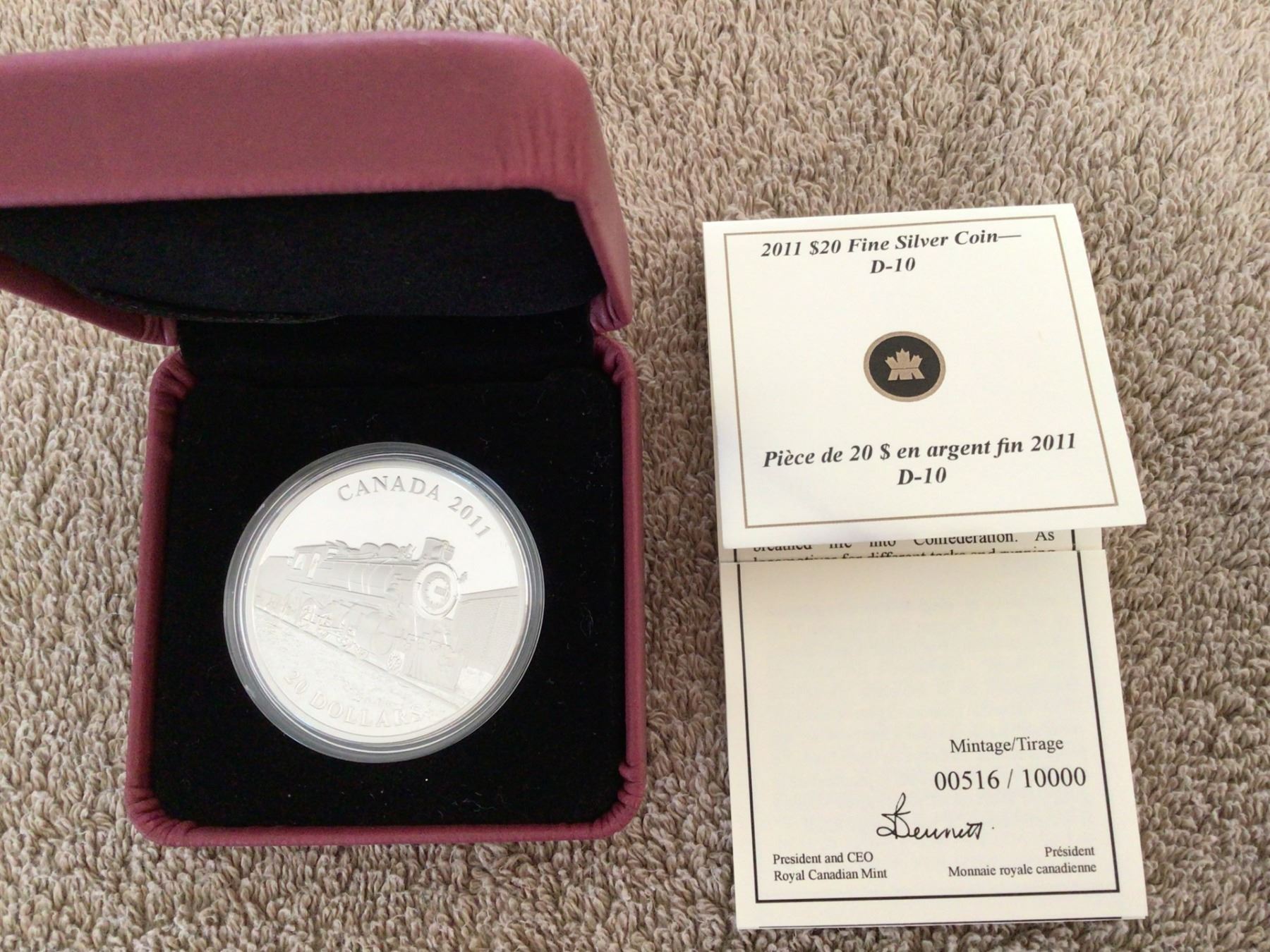 2011 D-10 Locomotive Proof $20 silver 1 oz .999 with box and COA. RCM