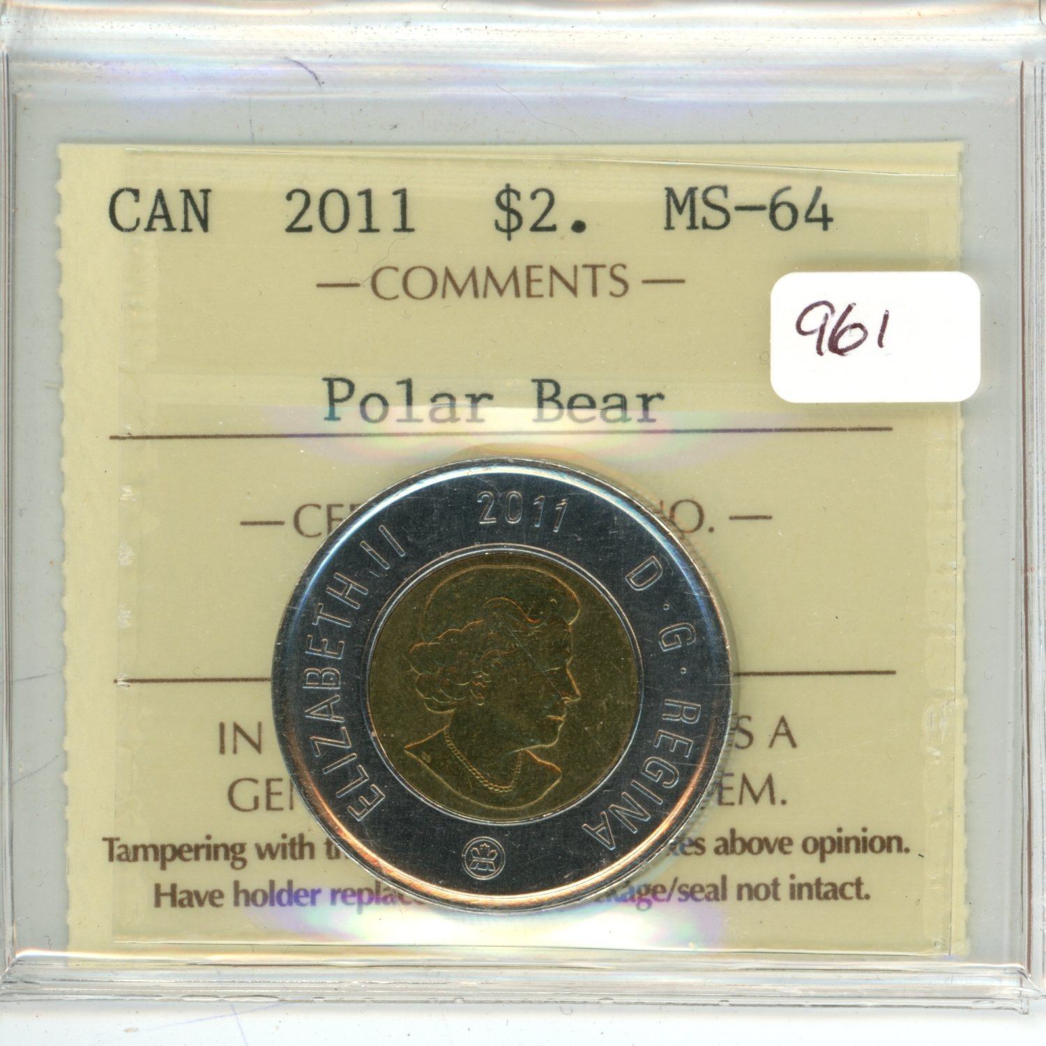 2011 Graded Canadian Toonie - MS-64: Polar Bear