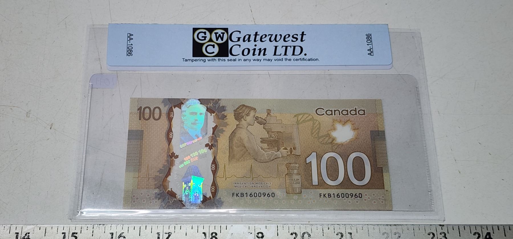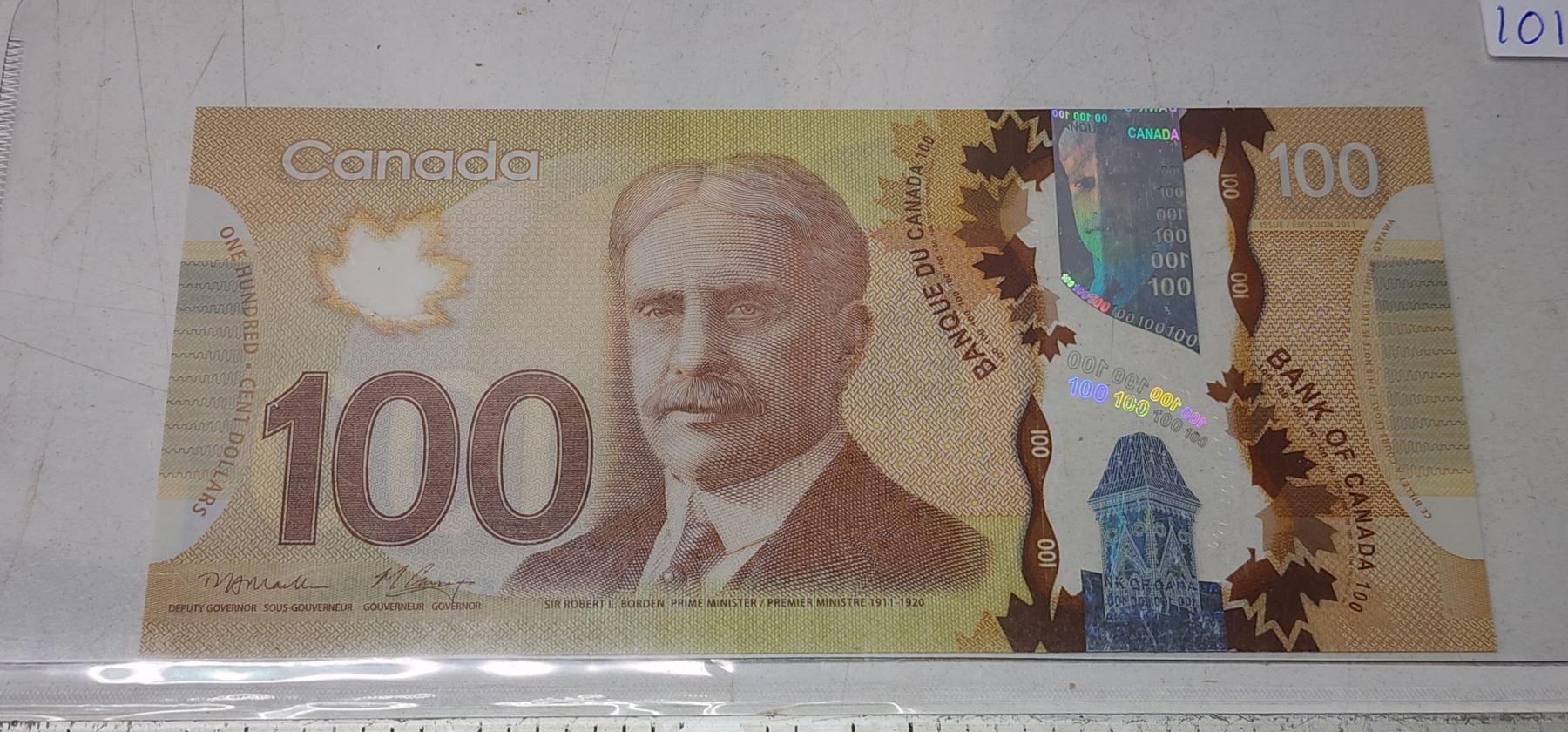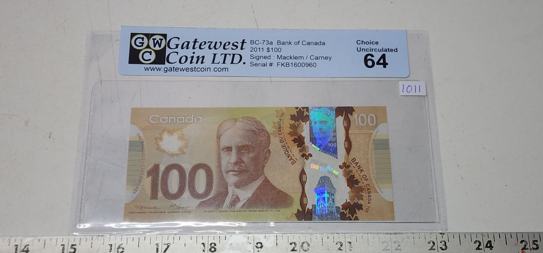 2011 Graded Canadian polymer $100 bill - Macklem/Carney - FKB prefix - 1600960 - UNC 64