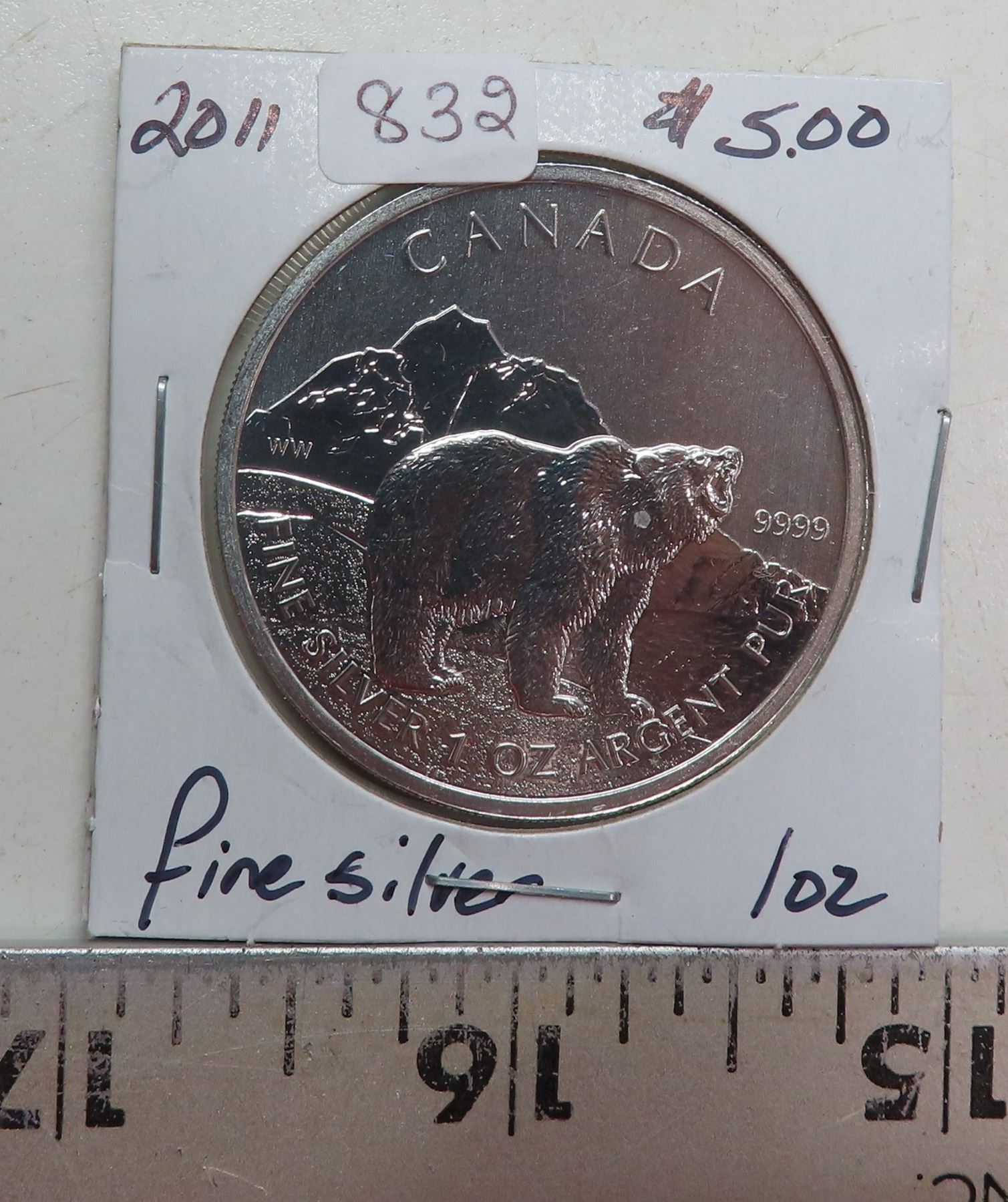 2011 Grizzly bear 1 oz fine silver $5 coin