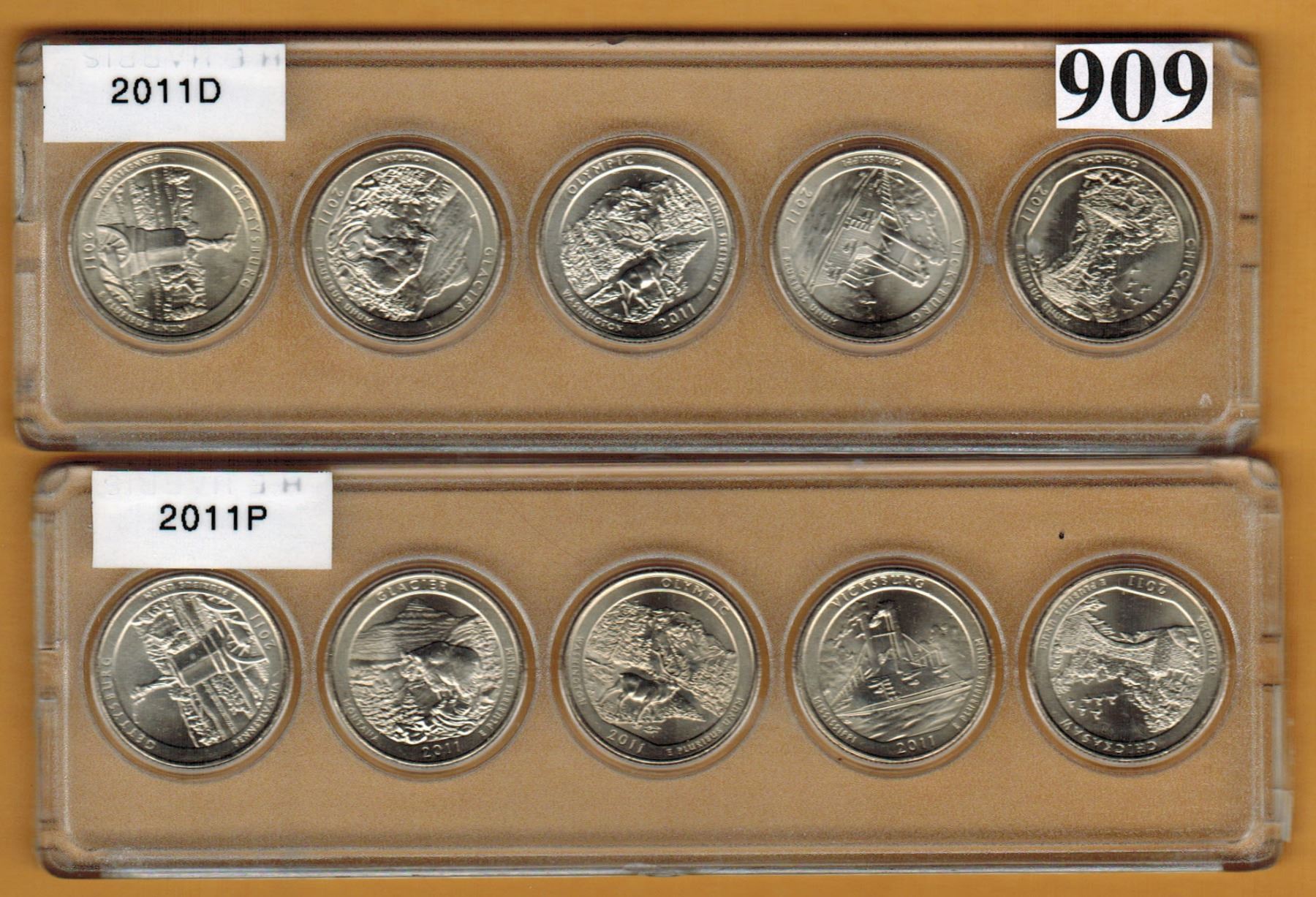2011 UNITED STATES NATIONAL PARKS QUARTER SETS - P & D MINT MARKS - Uncirculated