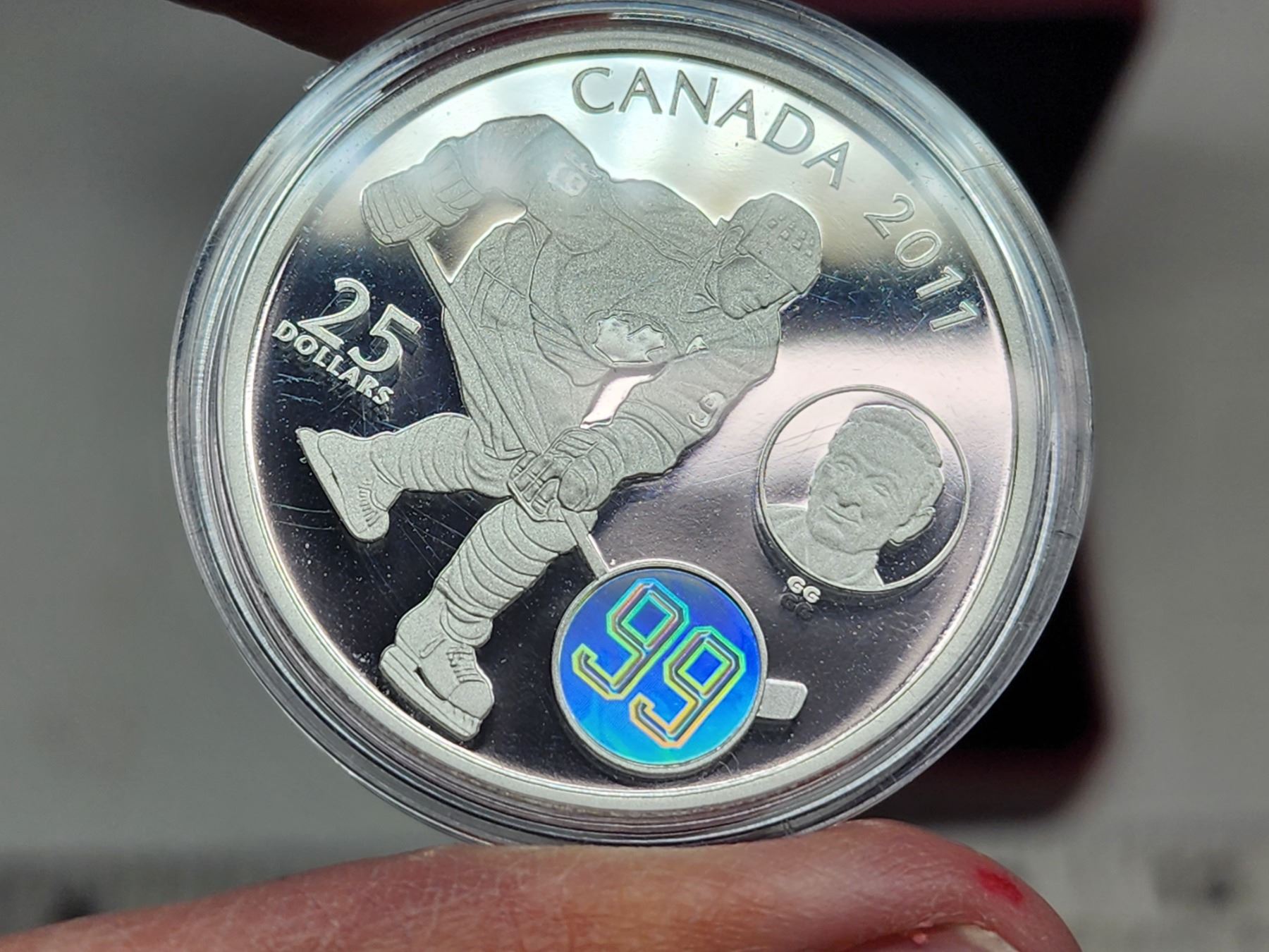2011 "Wayne & Walter Gretzky" Canadian 25 dollar, 1oz fine silver holographic coin - in case