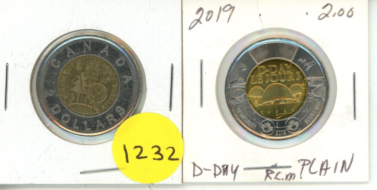 2011 canadian $2 boreal forest toonie and 2019 canadian $2-75th anniversary of D-day