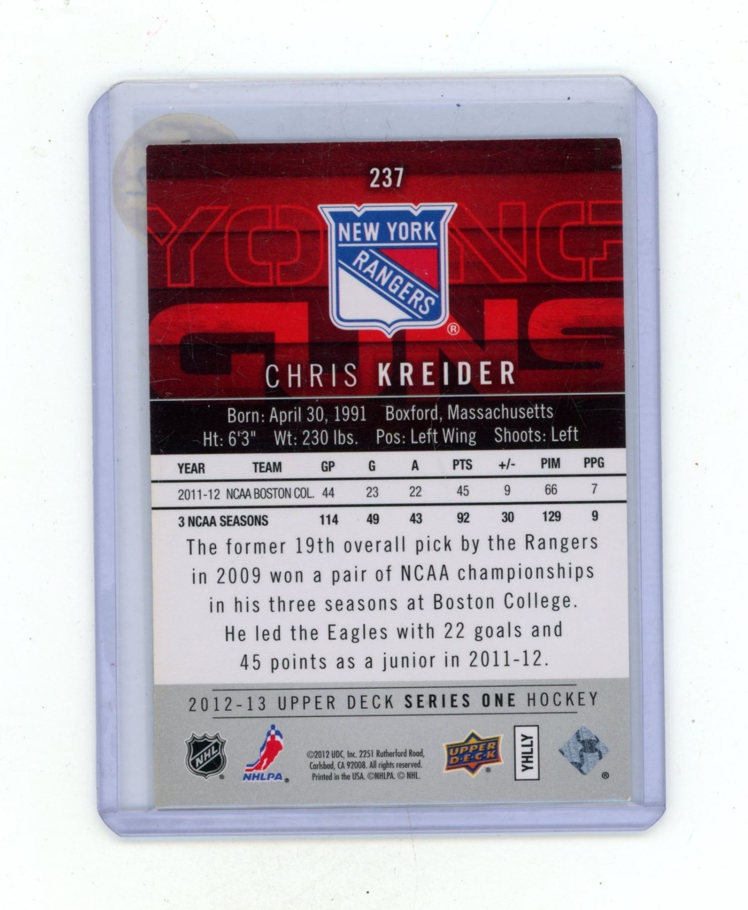 2012-13 Upper Deck Series One Hockey - Chris Kreider - Young Guns - 237.