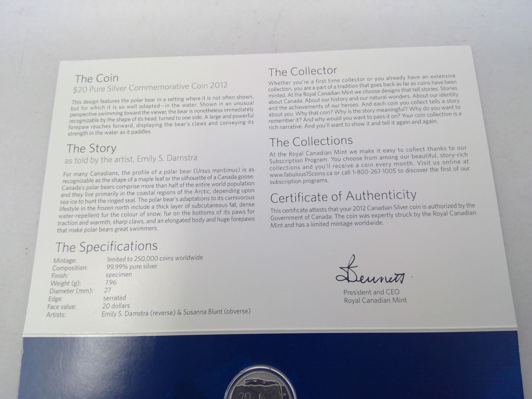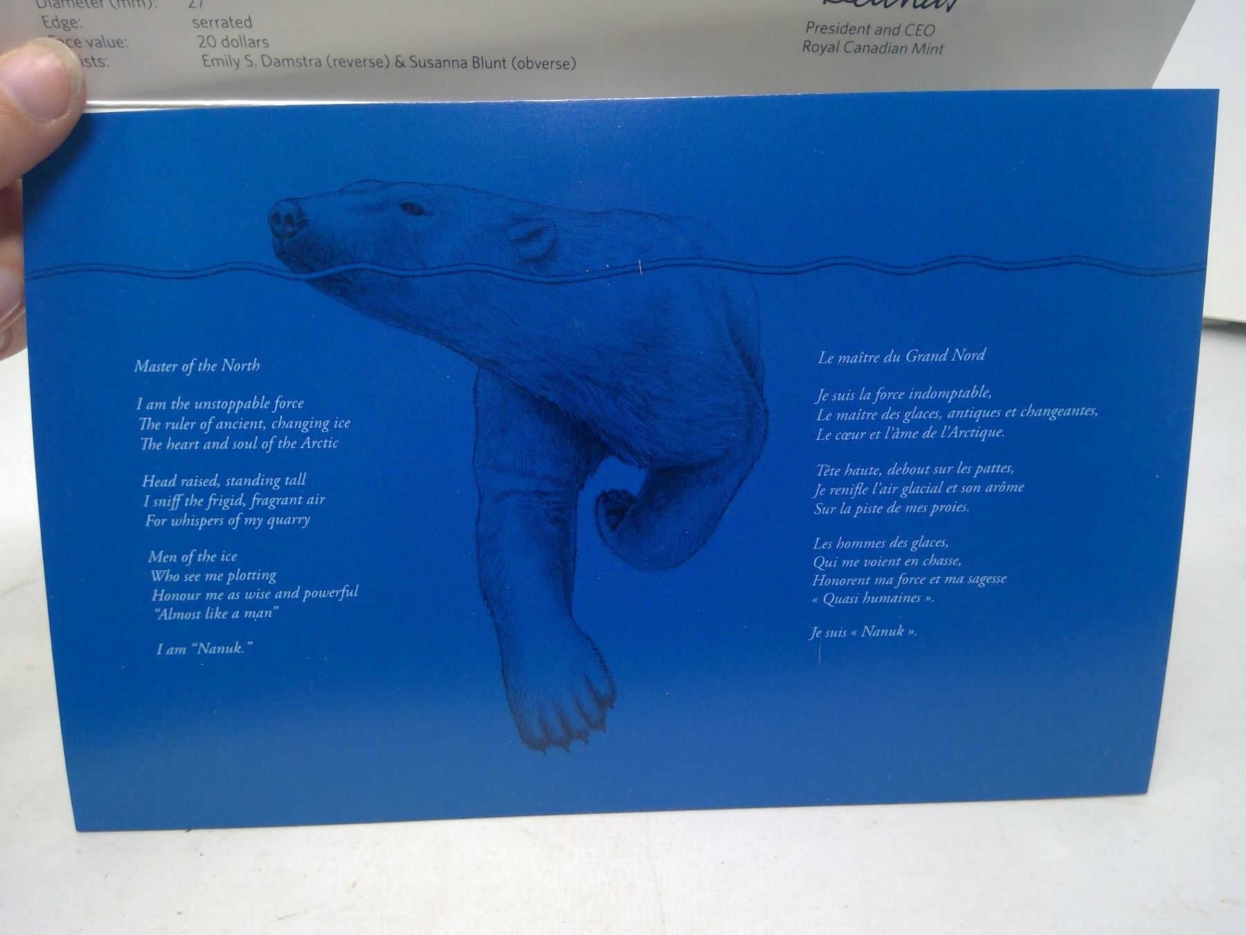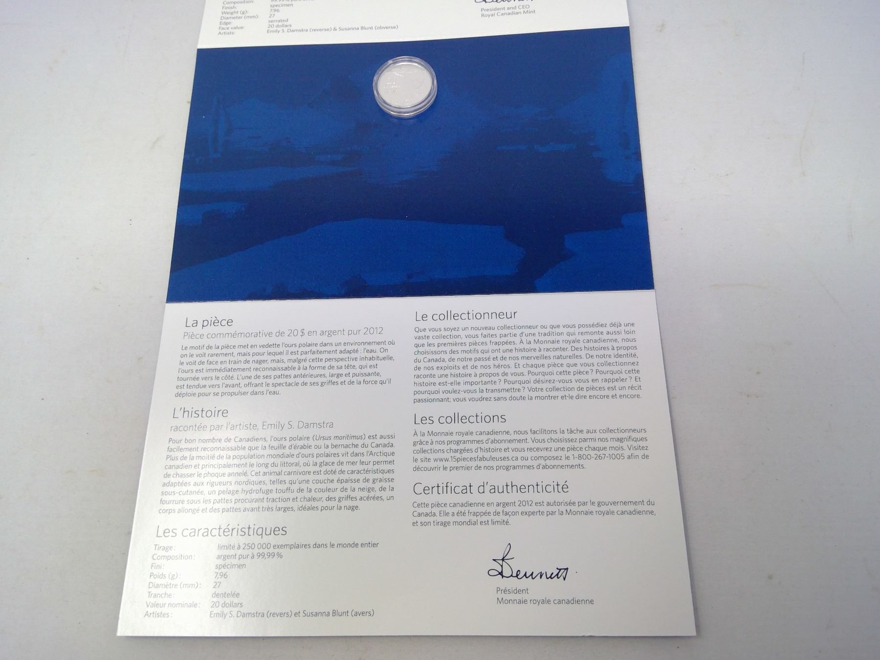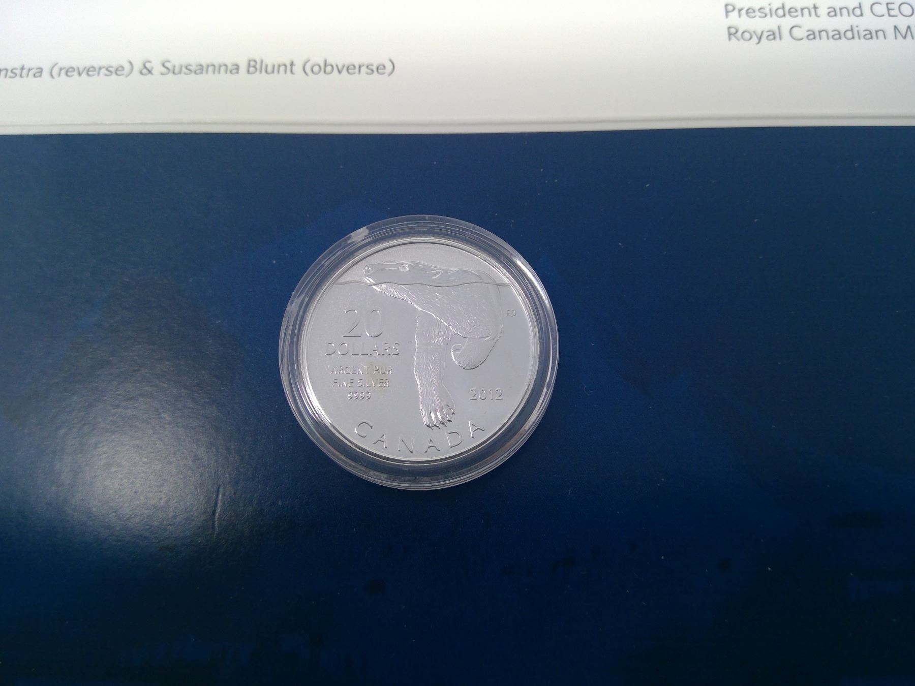 2012 - $20.00 PURE SILVER COMMERMORATIVE POLAR BEAR COIN