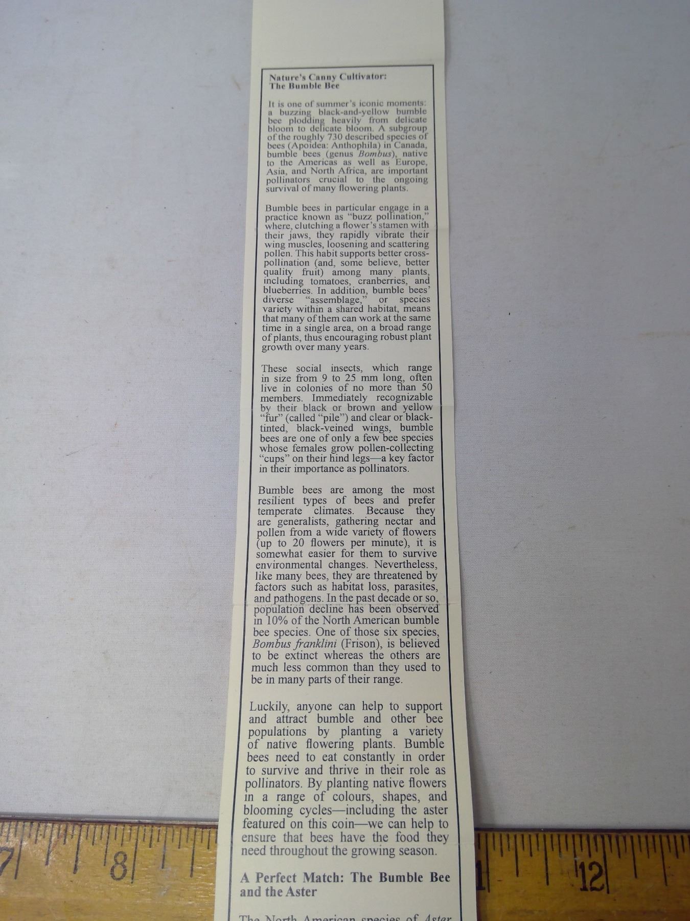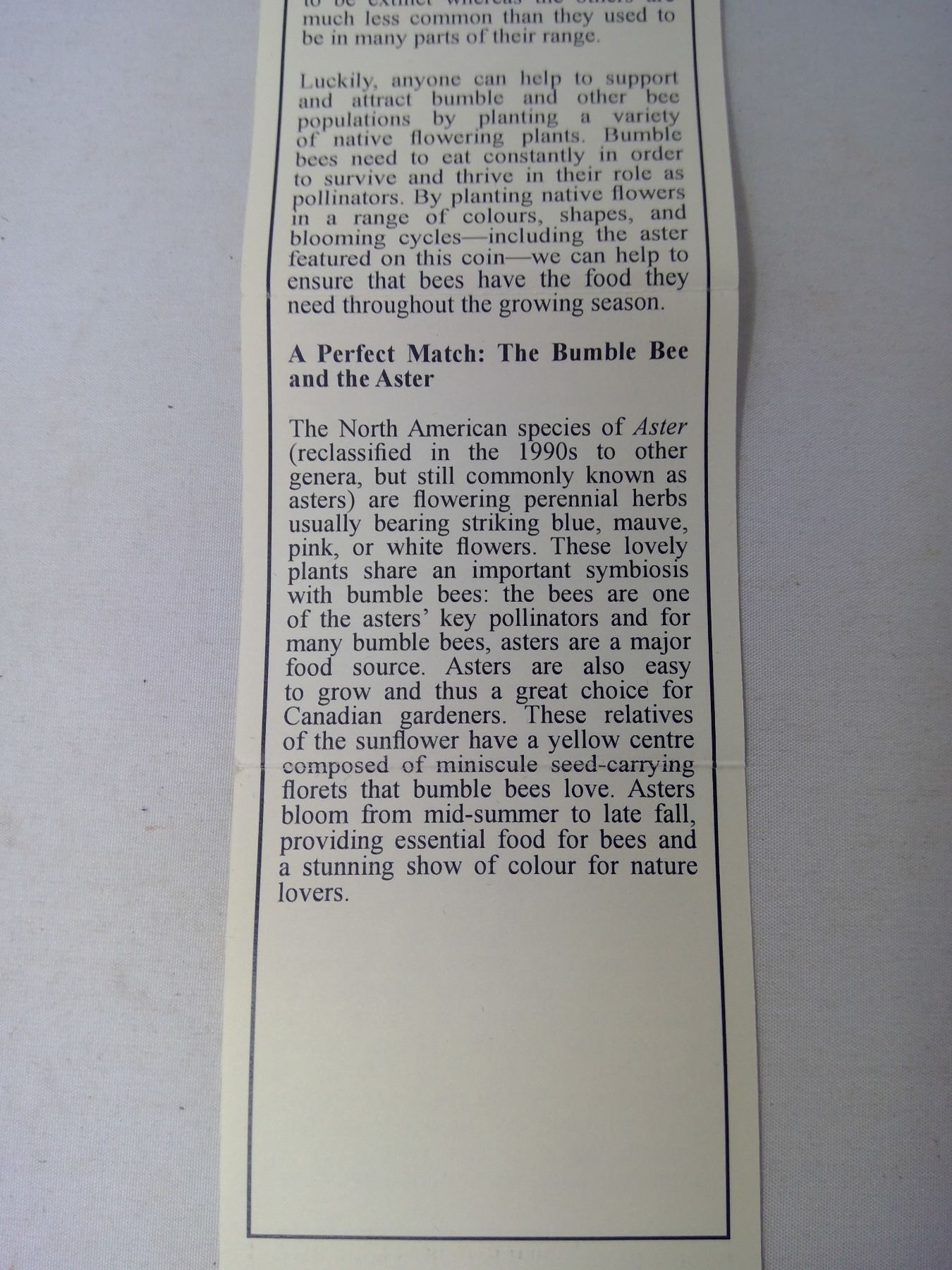 2012 -.25 CENT COIN - HAUNTED CANADA - ASTER WITH BUMBLE BEE