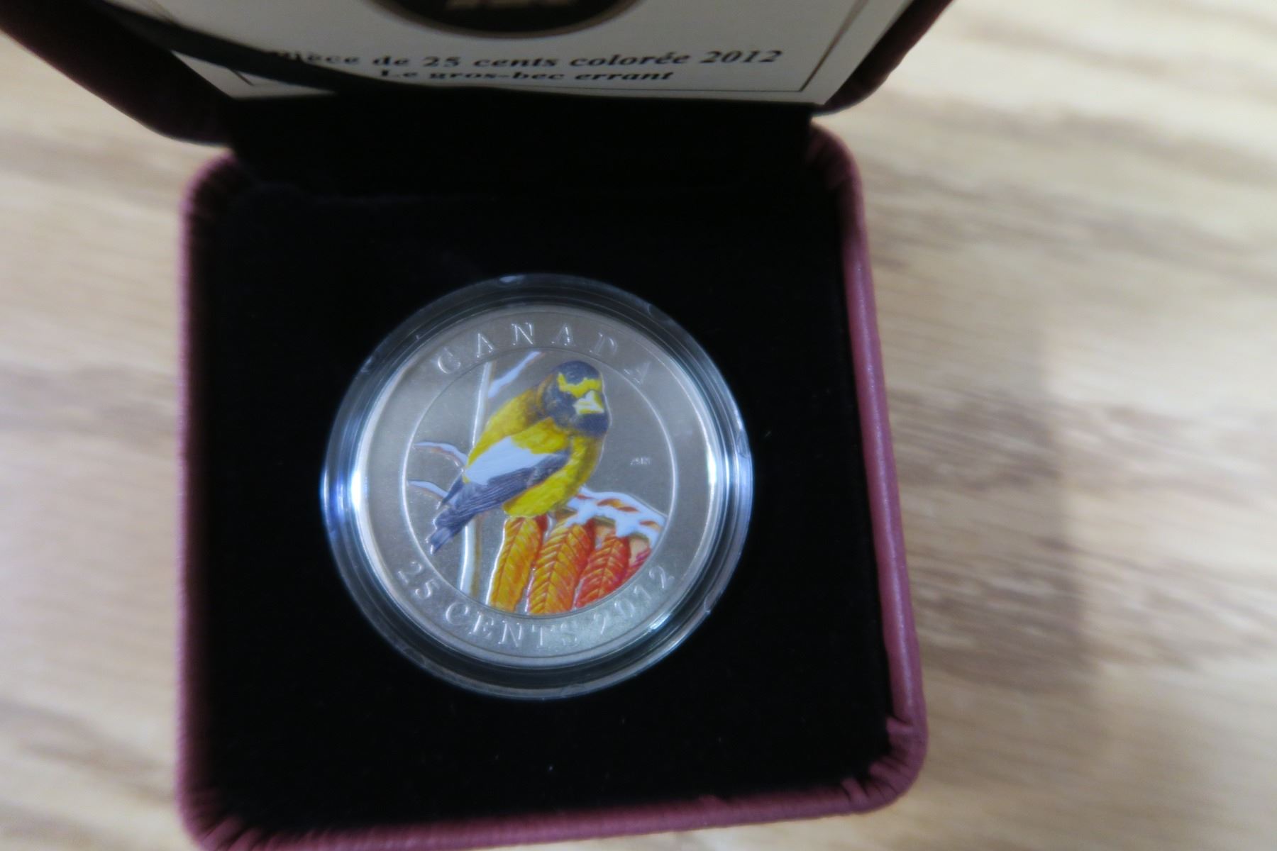 2012 25¢ Coloured Coin - Evening Grossbeak RCM