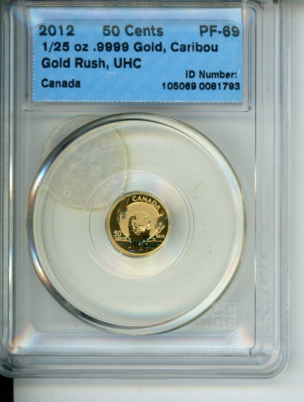 2012 50 cents 1/25 oz .9999 gold cccs pf-69