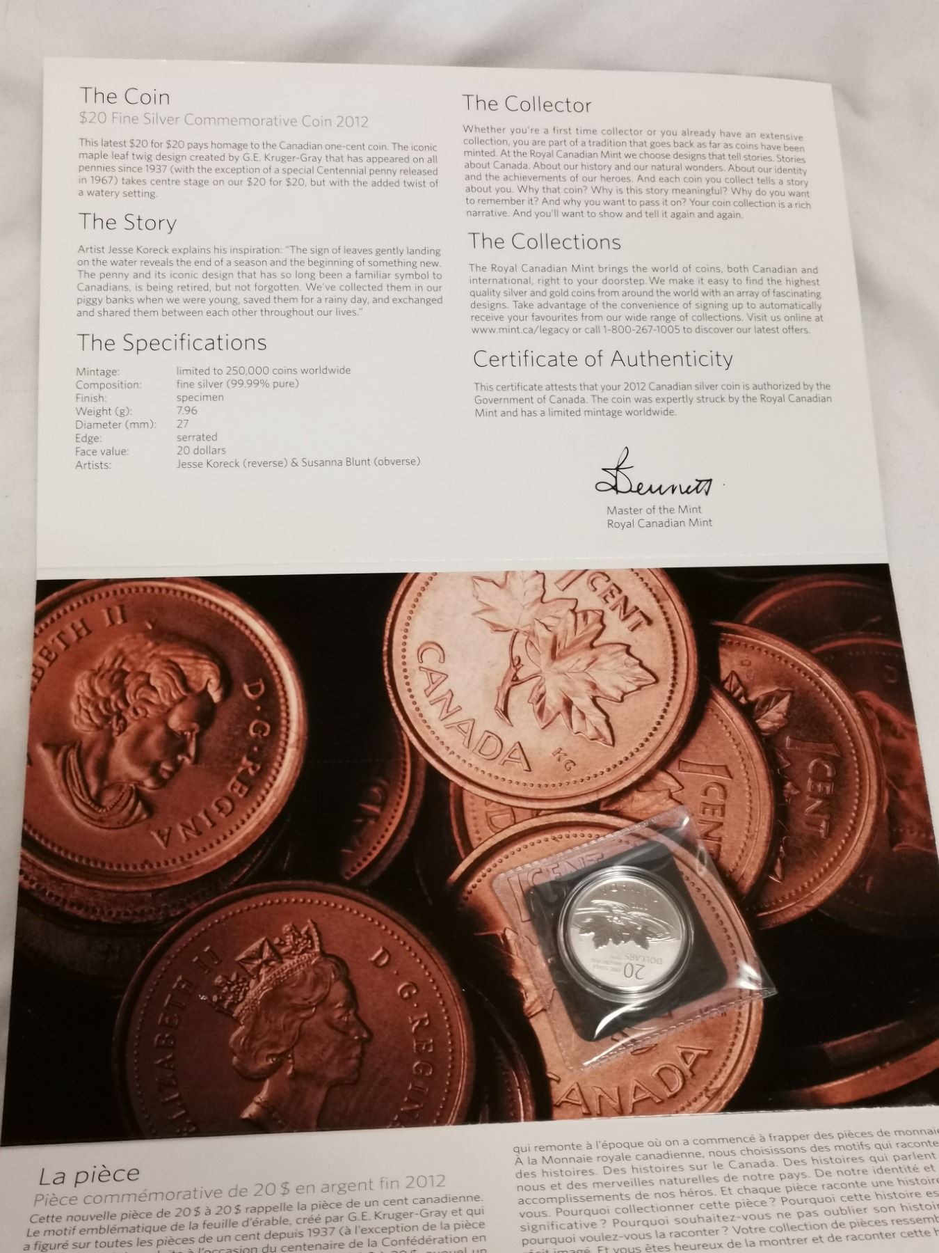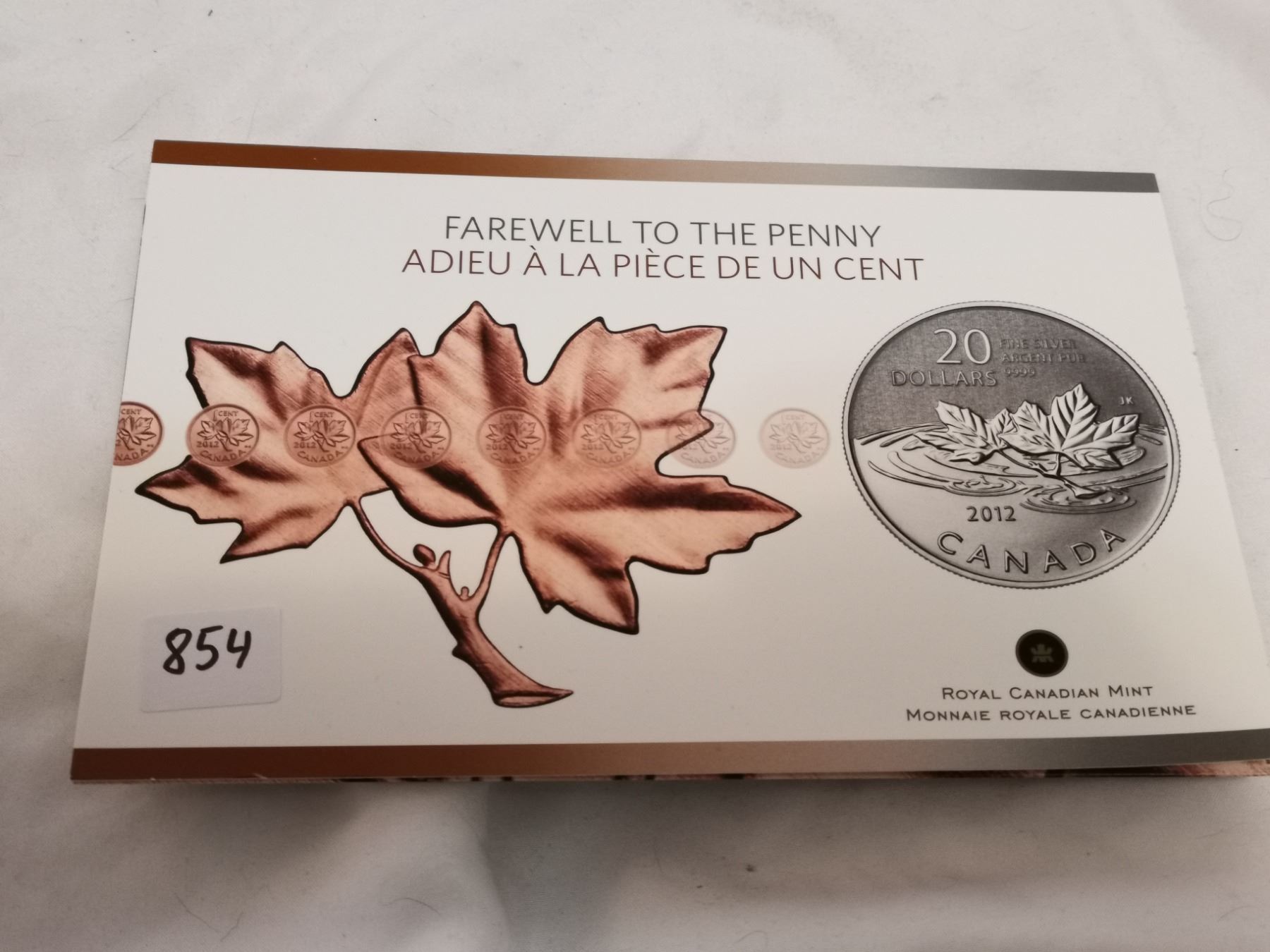 2012 Canada $20 “Farewell to the Penny” .999 Fine Silver Coin